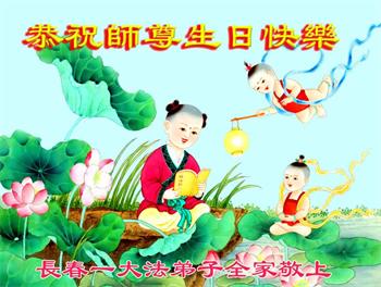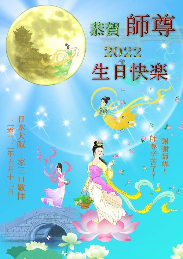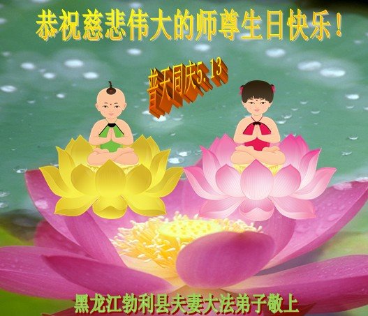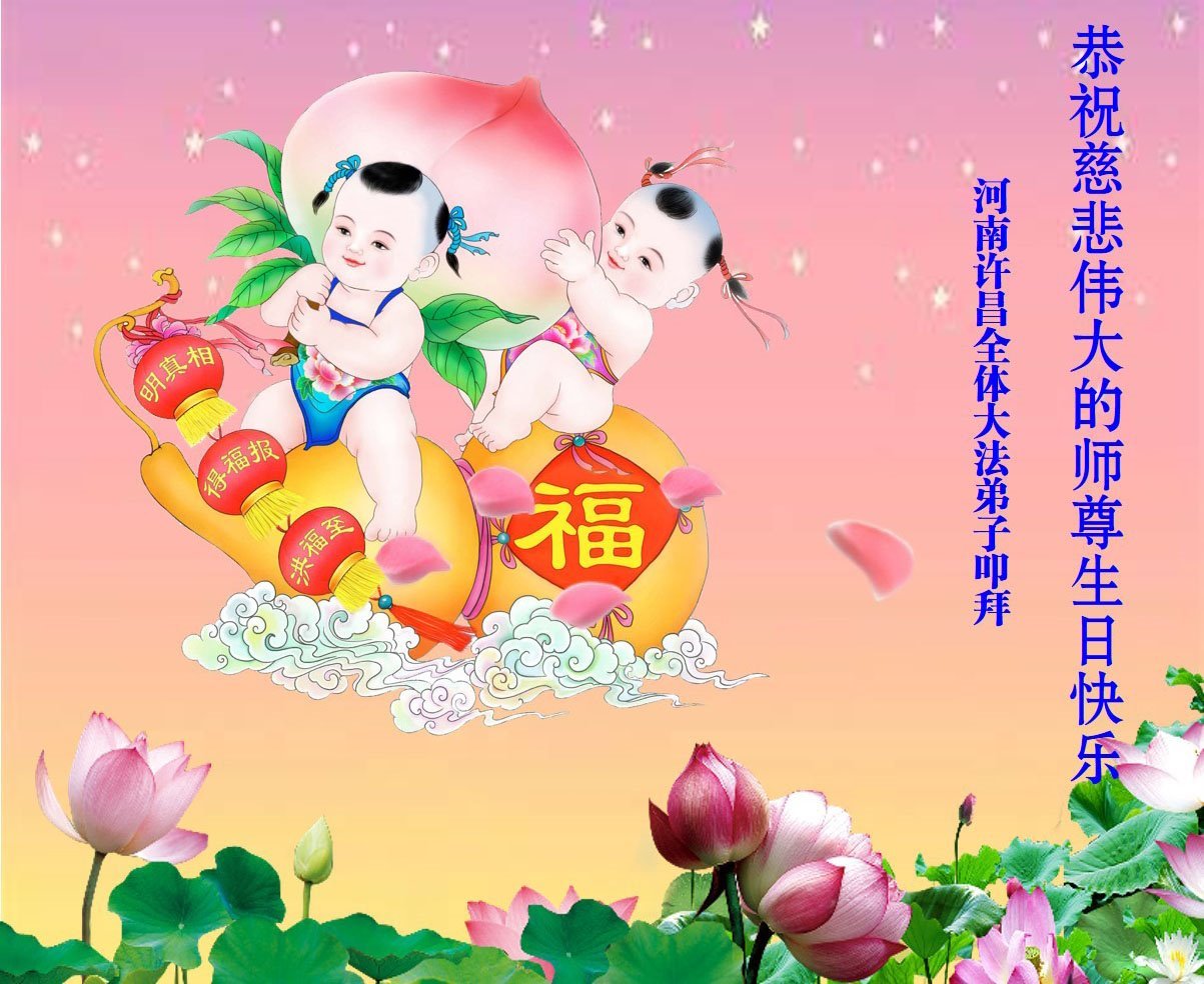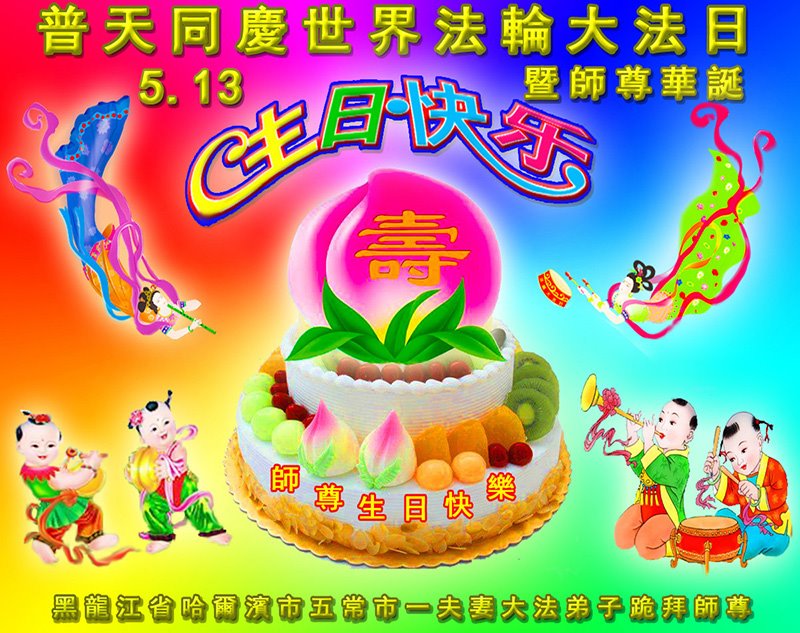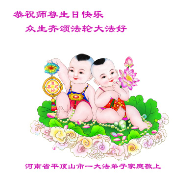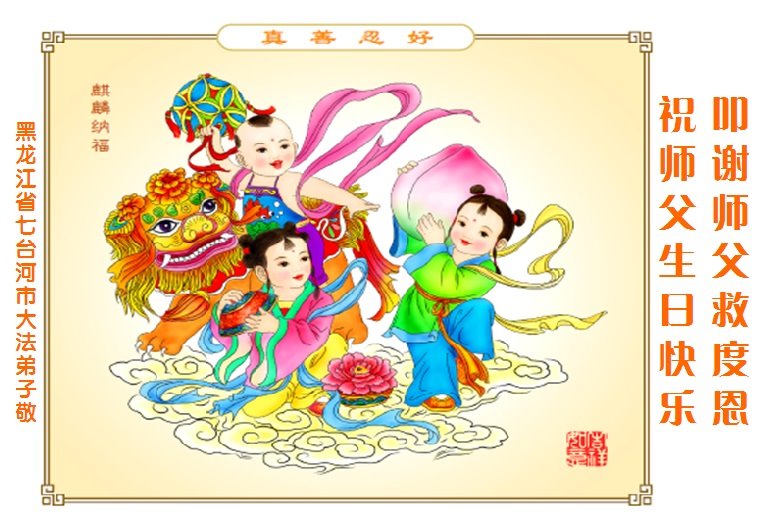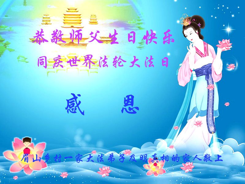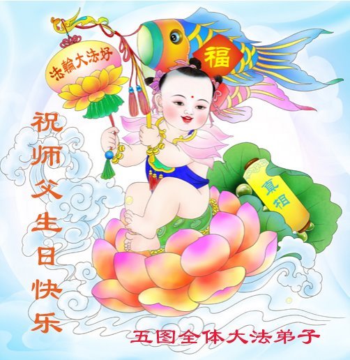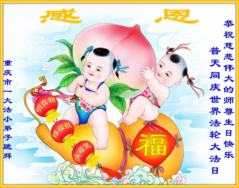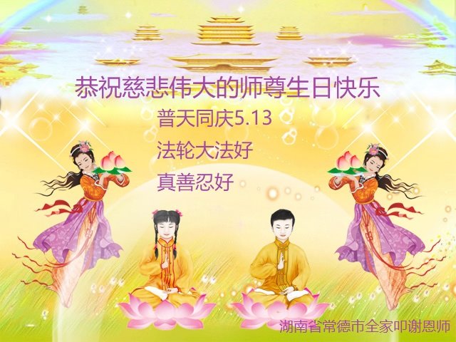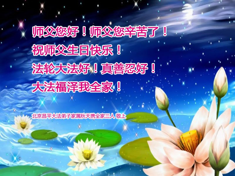 全家叩拜!谢谢伟大的大法师父,祝您生日快乐!
