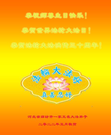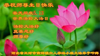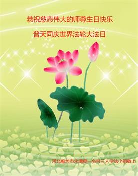 河北省平山县百姓在寄给大法师父的贺信中写道:我们见证了您的弟子们让家人和亲人们之间关系溶洽、和谐,关键就在于他们所信奉的“真善忍”有着巨大的善化人心的作用。“真善忍”不仅改变了他们,让我们身边的人看到了大法的美好,同时也改变了我们。