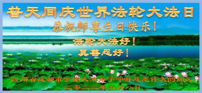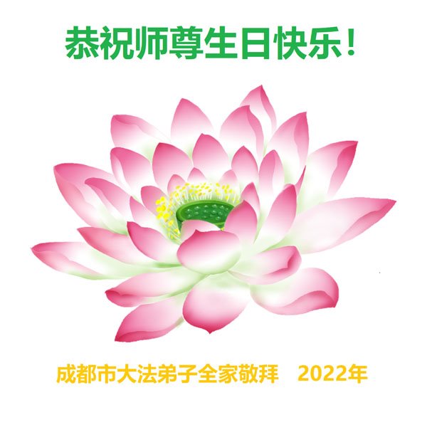 成都市一位市民在危难中得到了大法弟子教给的九字真言——“我就天天念,有空就念,念得我心情舒畅极了。现在,我脸色红润,神清气爽,而且生意也特别兴旺。我衷心的感谢李大师的救命之恩!我带着我的家人叩头,敬祝李大师生日快乐!”