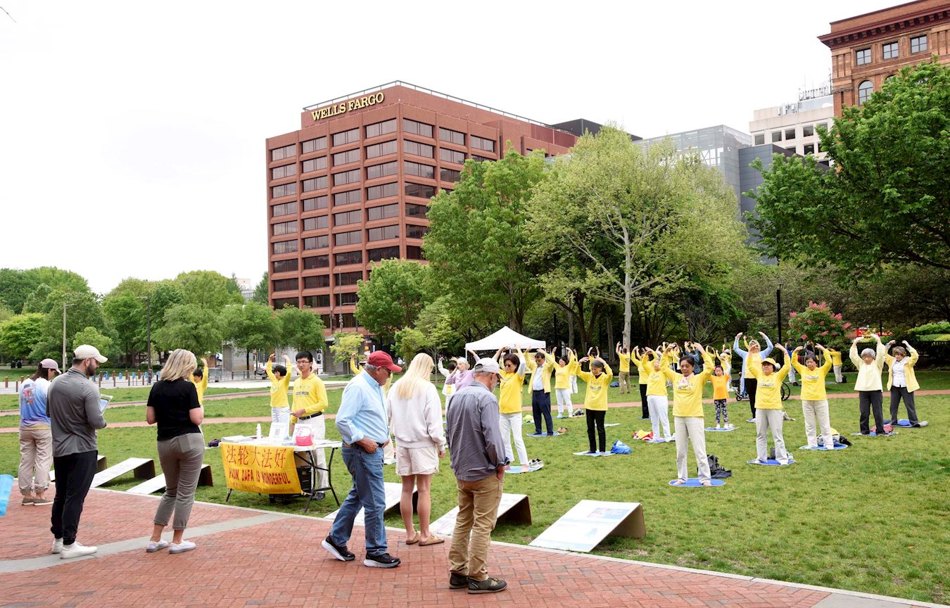 ![]() 图1~3:五月十五日,大费城地区部份法轮功学员在费城著名历史景点自由钟独立广场举办了盛大的集会,庆祝法轮大法洪传世界三十周年。 |