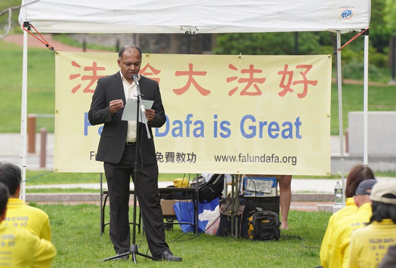 当天到自由钟参观的根德拉·布哈拉(Gendndra Bujara)医生也表达了对法轮功的支持。