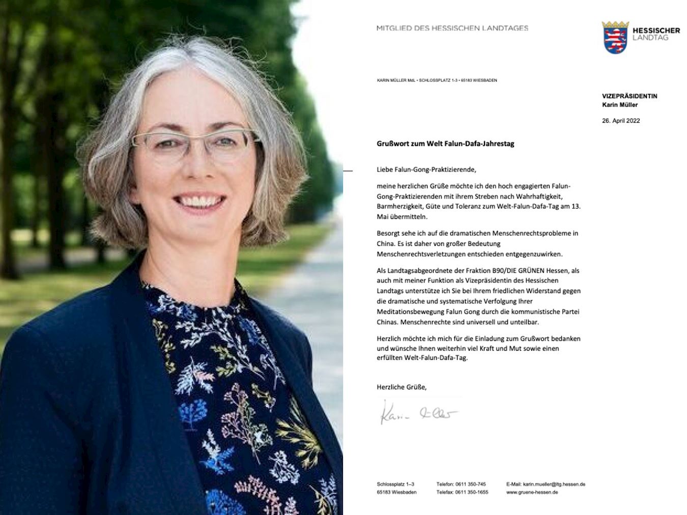 黑森州议会副议长卡琳·米勒、黑森州议会两位绿党副主席玛婷娜·费尔德迈尔、米莉亚·达尔克一向称赞法轮功学员遵循的“真、善、忍”原则,多次祝贺世界法轮大法日,并谴责中共对法轮功学员的残酷迫害。