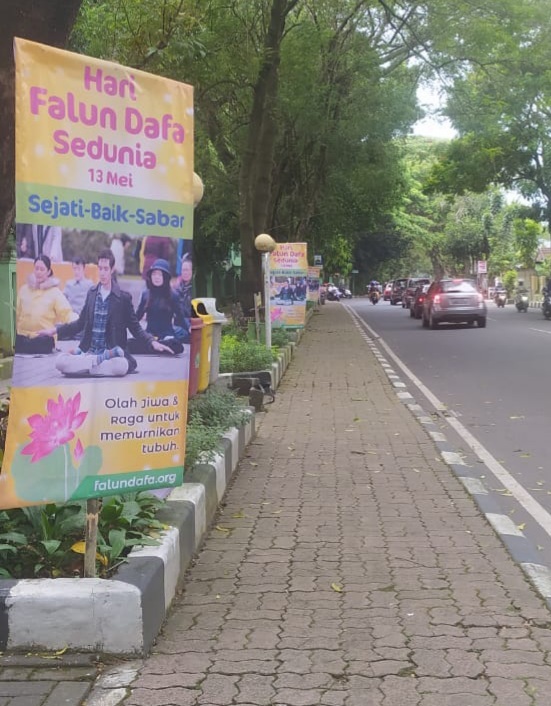 ![]() 图5:玛琅市主要街道两侧悬挂着庆祝世界法轮大法日横幅。 |