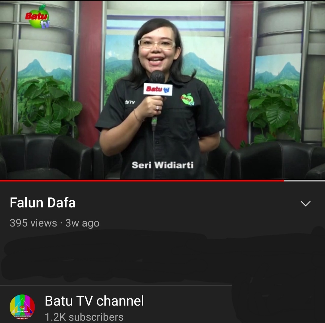 东爪哇省峇都市私人电视台的斯里·维迪亚蒂(Seri Widiarti)女士在广播中,代表峇都电视台向全世界庆祝法轮大法日的大法弟子们致以祝福,并祝李洪志大师生日快乐。。。