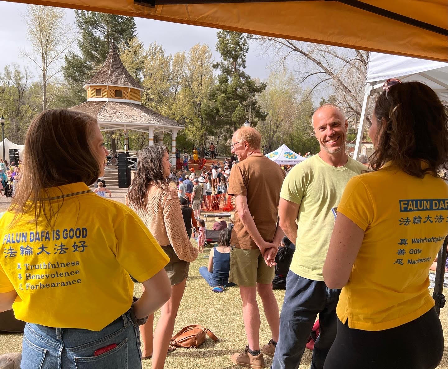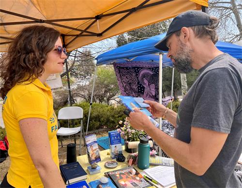 杜兰戈市法轮功学员还受组织者之邀,向游客做了法轮功的功法展示。一些曾到法轮功在本市炼功点学过功的当地居民,帮助学员搭建摊位的帐篷,并在活动中帮助向民众讲述法轮功学员在中国大陆遭受迫害的真相。