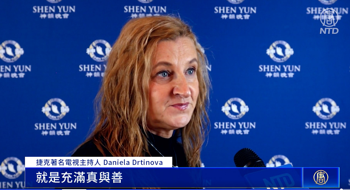 ![]() 图6:二零二二年五月二十八日晚,捷克著名电视主持人(Daniela Drtinová)在布拉格会议中心,观看了神韵世界艺术团的演出。她说:神韵是超凡的。(新唐人电视截图) |