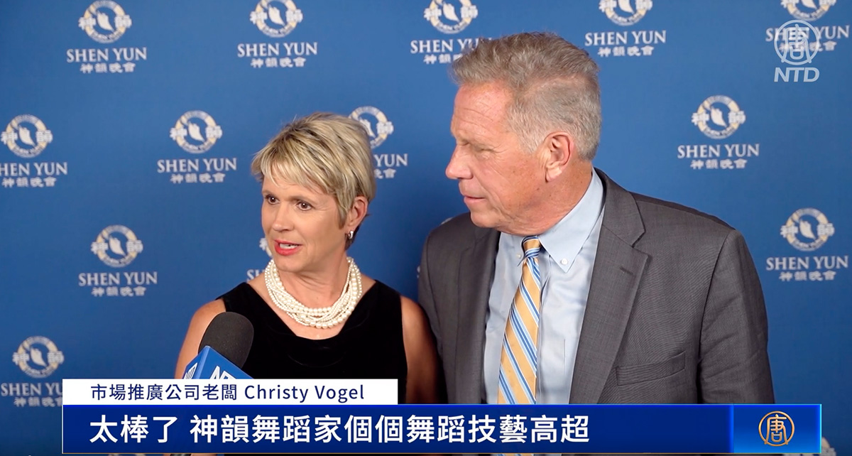 ![]() 图7:二零二二年五月二十七日晚,市场推广公司老板克里斯蒂·沃格尔(Christy Vogel,左)和丈夫比尔·沃格尔(Bill Vogel)观看了神韵北美艺术团,在圣彼得堡杜克能源表演艺术中心-马哈菲剧院的第三场演出。(新唐人电视台) |