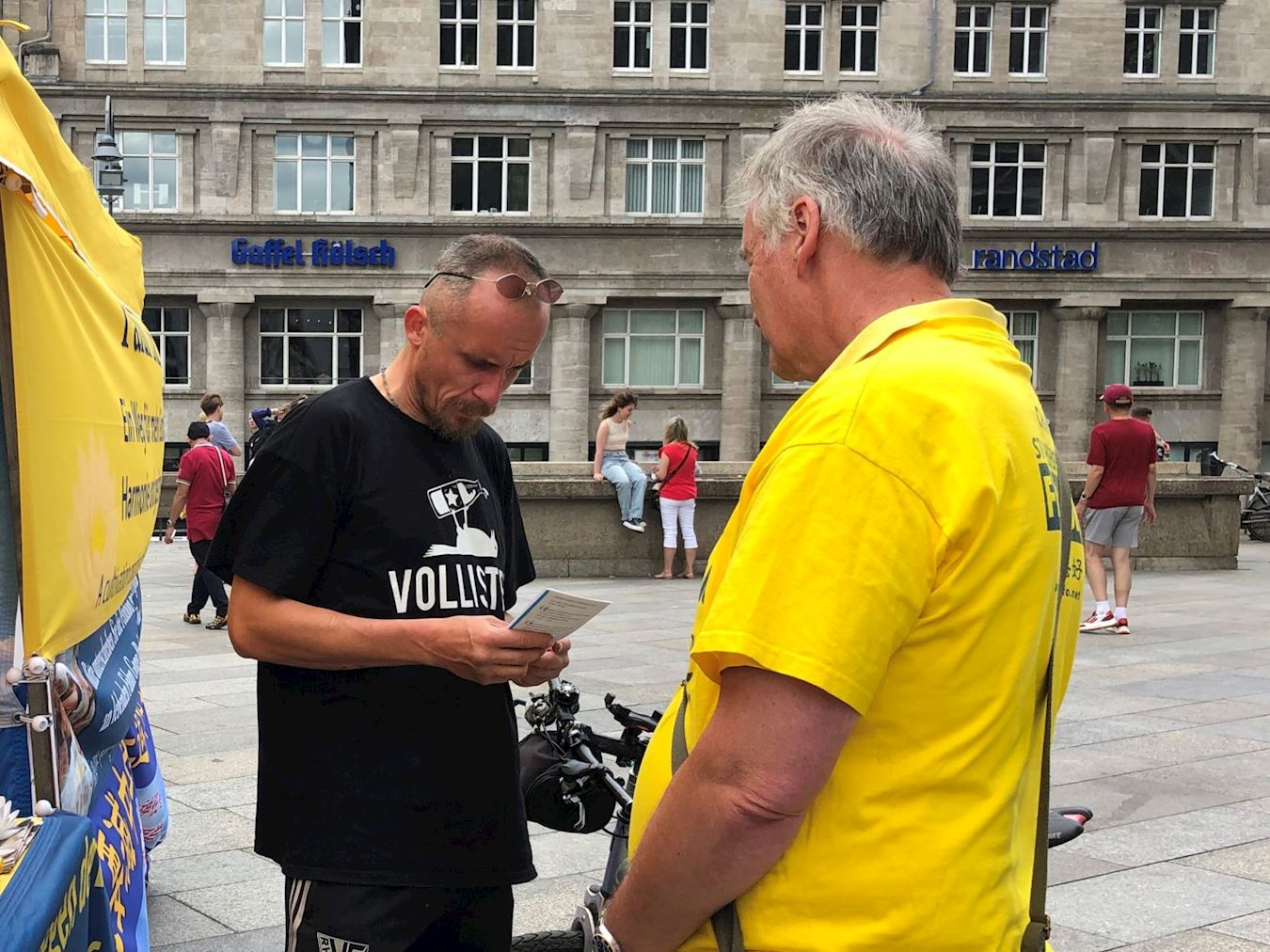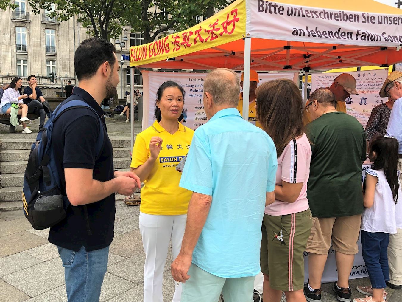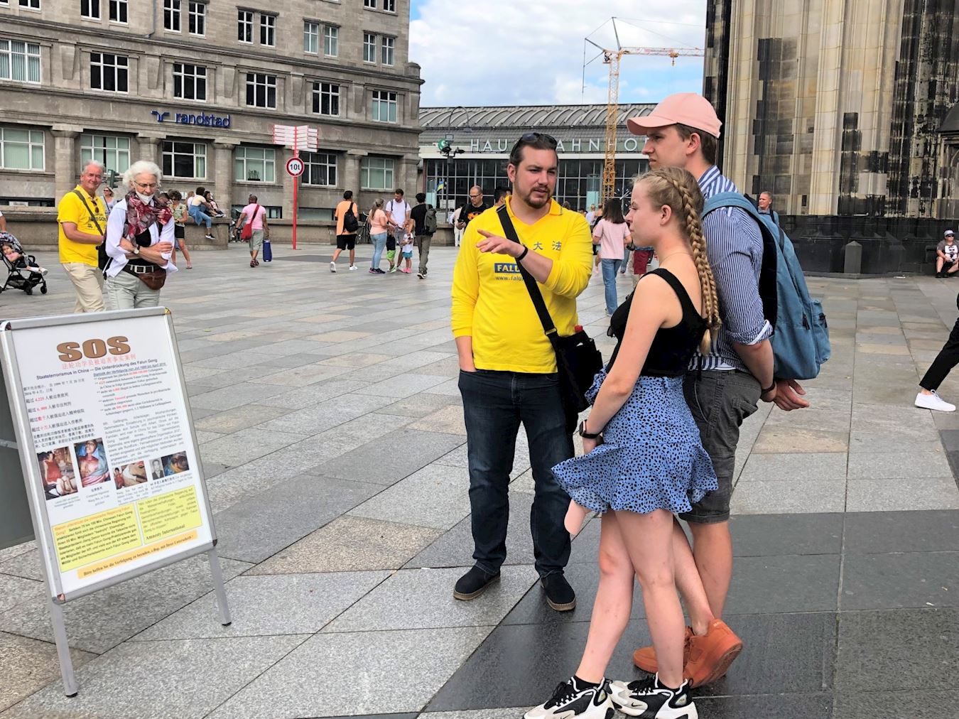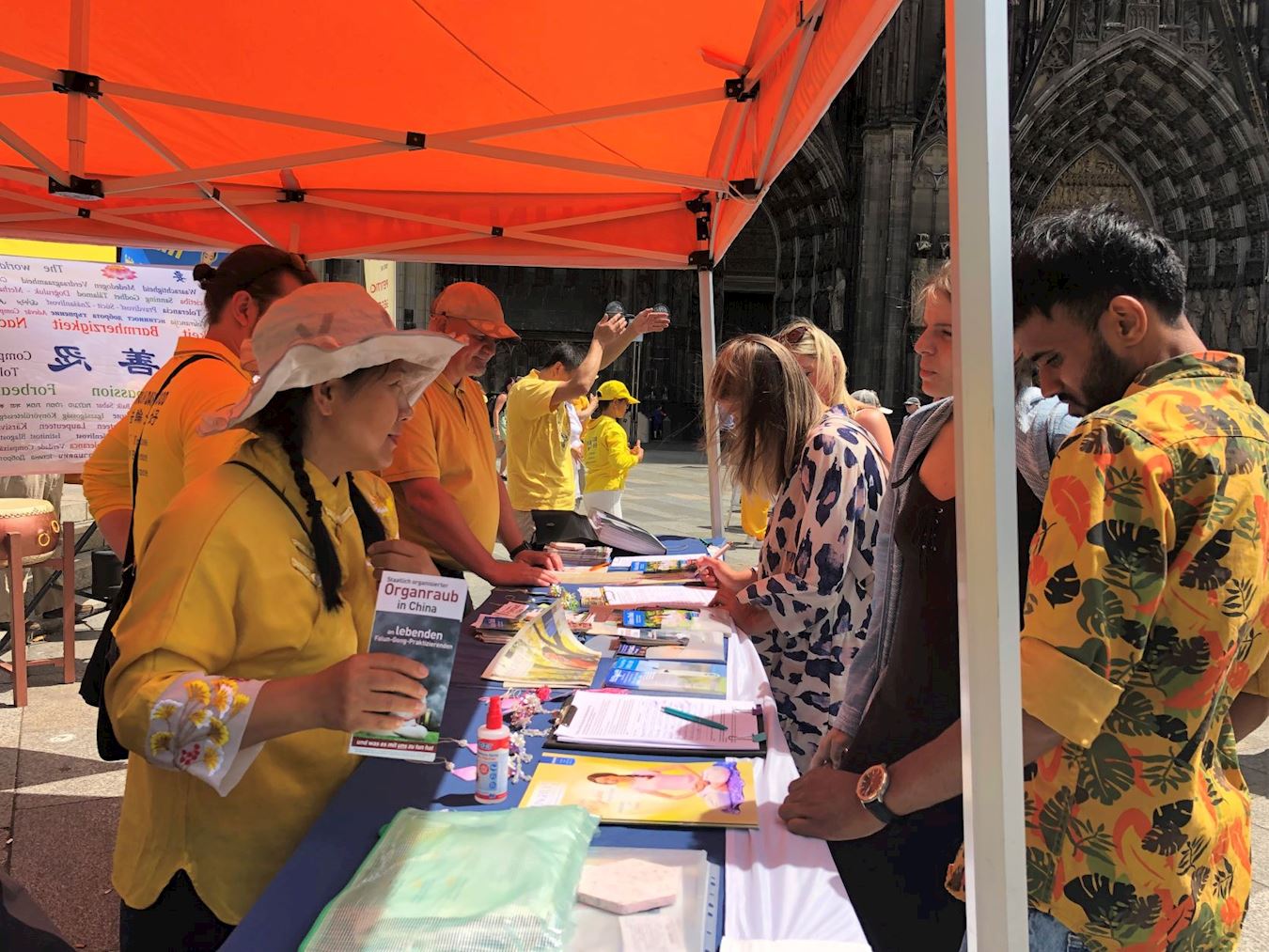 <英文版: http://en.minghui.org/html/articles/2022/6/29/202013.html>法轮功学员科隆大教堂前讲真相 民众签名支持