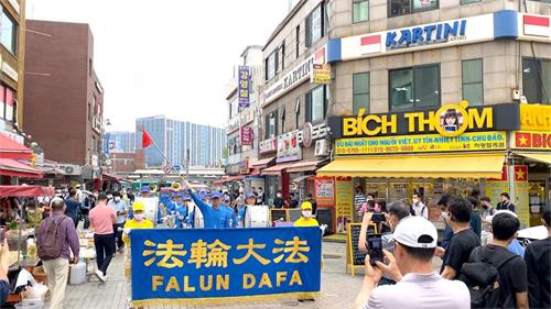 安山市以工业园区为主,因此居住了很多的外国人,其中中国人最多,在安山多文化街,也有很多中国商铺。当他们看到天国乐团的游行时,纷纷出来观看。有人甚至向天国乐团竖起大拇指表示称赞。