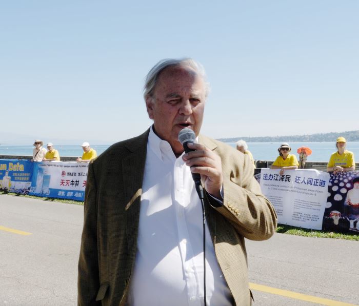日内瓦州大议会议员帕特里克·迪米耶(Patrick Dimier)在发言中说:“今天我们很遗憾的来到这里,因为迫害仍在继续,而且邪恶无耻。”“因为它首先影响的是那些只想在相互尊重中为他人带来美好、和平和爱的人,这已经完全不能令人接受。但更不能接受的是,我们许多自称民主的国家保持沉默。”“我欣赏法轮功,原因很简单,他是平和的,提倡爱和尊重他人。只要我们互相尊重和爱护,我们之间拥有的差异就不算什么了。”