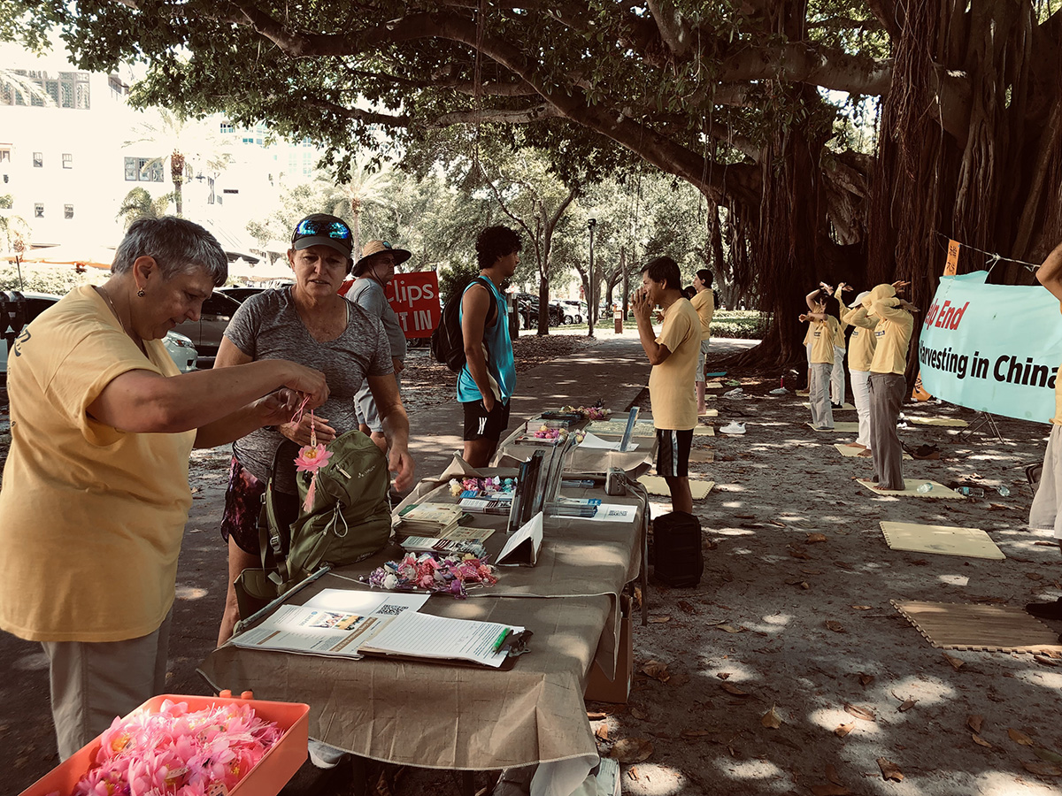 在一天的活动中,又有许多人了解到真相,并给法轮功学员送上真诚的支持。
