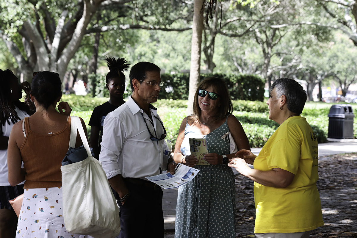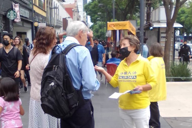 当天有许多过往行人驻足与法轮功学员交谈,并在呼吁结束中共对法轮功迫害的请愿书上签名。