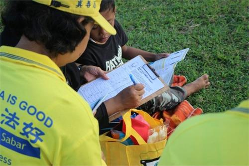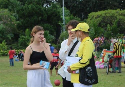 一名青年知道了法轮功被迫害的真相后,开始时不愿给予签名支持,他认为迫害发生地离自己很遥远,自己没有给予签名的义务。学员跟他讲真相说,迫害波及世上的每一个人,如果每个人知道了真相之后而选择沉默,实际上每个人都间接参与了这场迫害,有一天也会影响到自己。那位青年听了之后立刻支持正义,很热情的在表格上签下自己的名字。