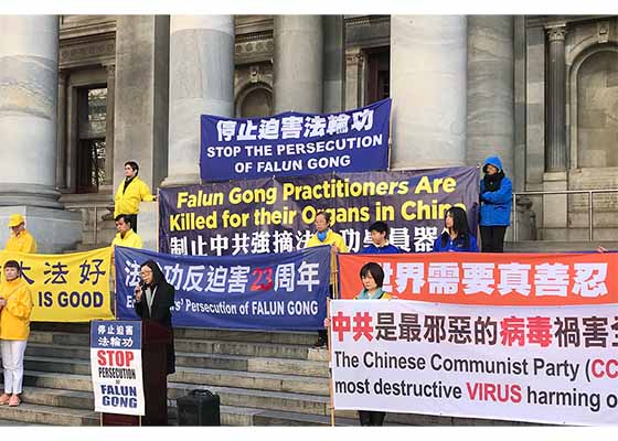 法轮功学员七月十二日在南澳州议院大楼前举行反迫害集会,呼吁制止中共对法轮功长达23年的残酷迫害。集会得到政要、社团支持。