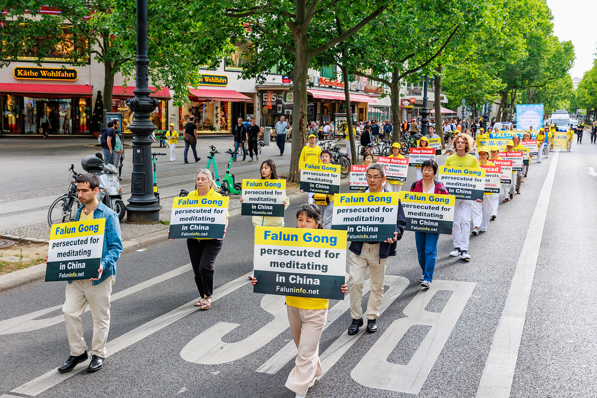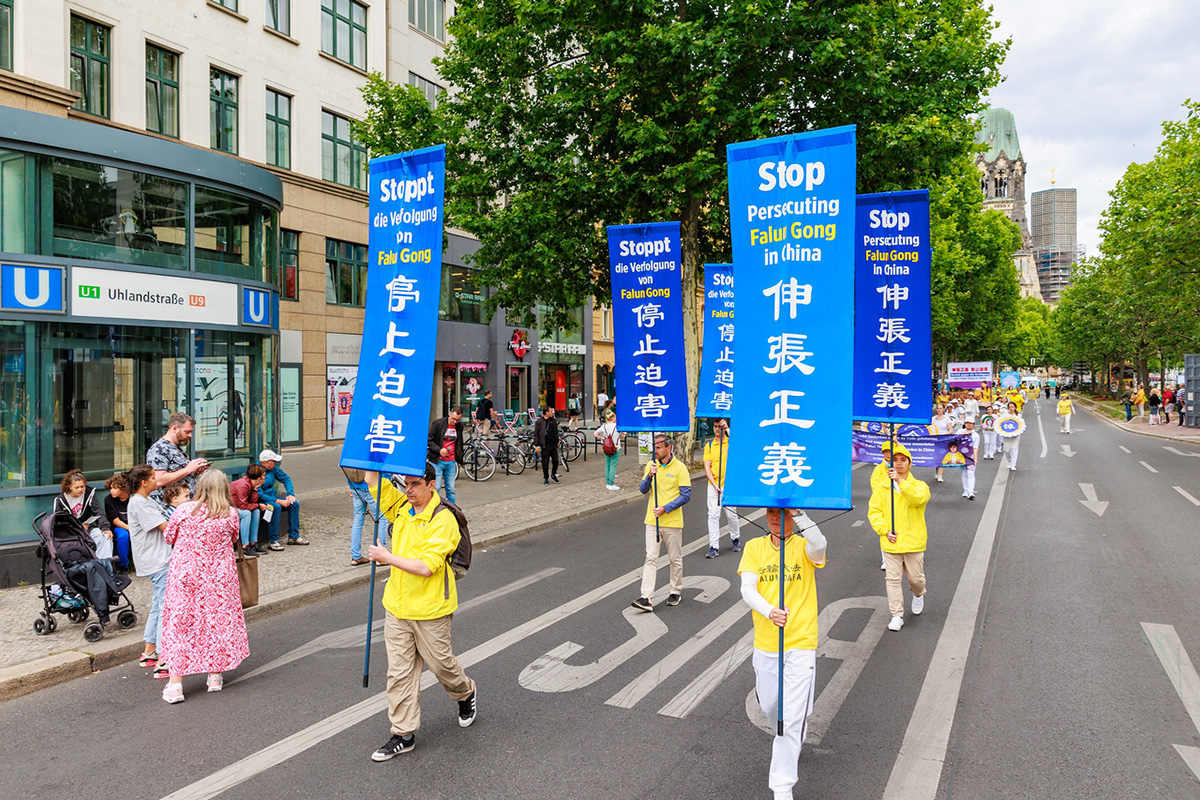 这次法轮功学员特意安排了两天游行活动,十五日在原西柏林、十六日在原东柏林,想让更多民众了解法轮功是什么,以及中共迫害法轮功和活摘法轮功学员器官的罪恶。学员的活动得到民众的支持。