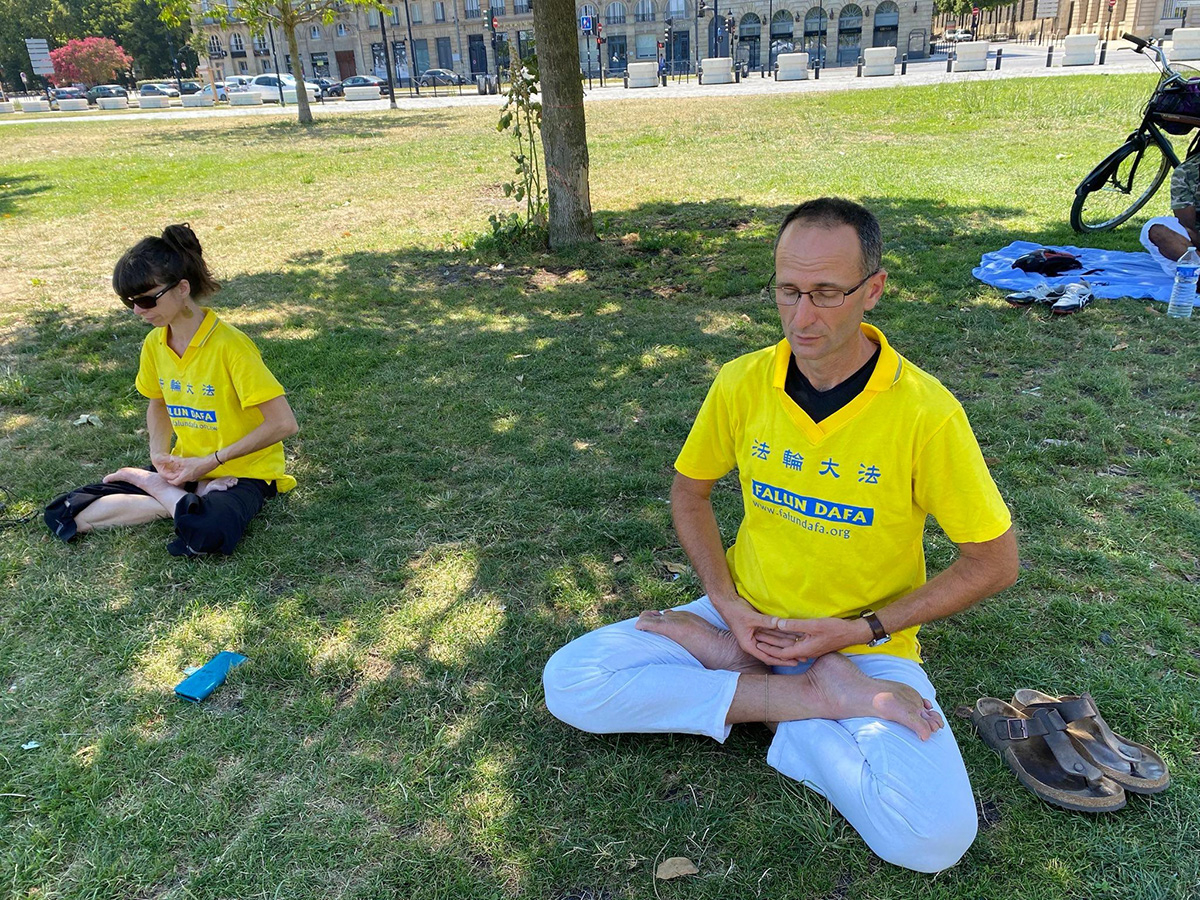 ![]() 图3:七月二十四日,法轮功学员在波尔多市加隆河畔打坐炼功。 |