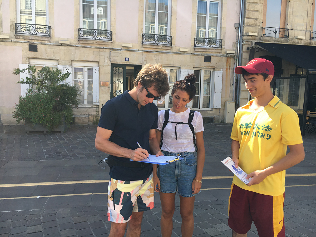 二零二二年七月十六日至二十四日,在波尔多河畔、马赛老港和诺曼底名城卡昂,都有法轮功学员的身影,他们举办活动,揭露中共对法轮功的迫害,也举办了烛光夜悼,悼念被迫害致死的中国大陆同修。很多来自世界各地的游客,签名表示支持法轮功反迫害。
