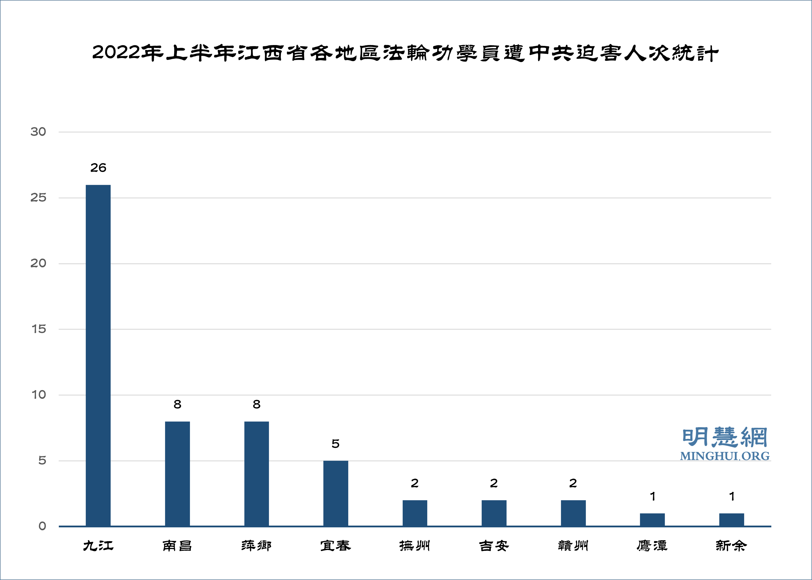 2022年上半年获悉江西省法轮功学员55人次受迫害