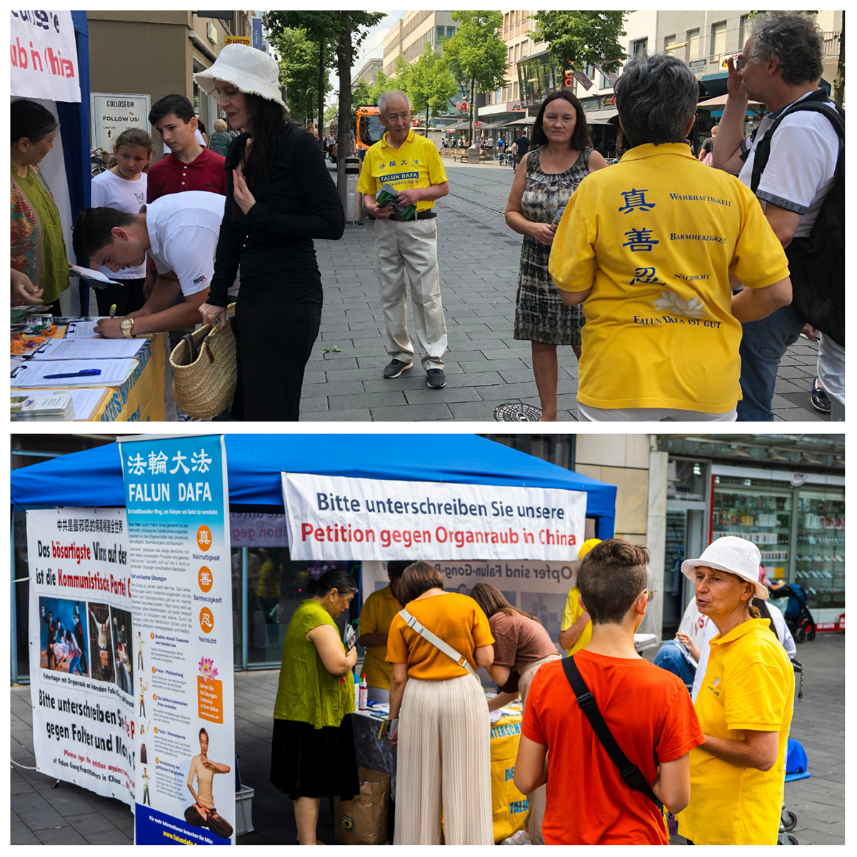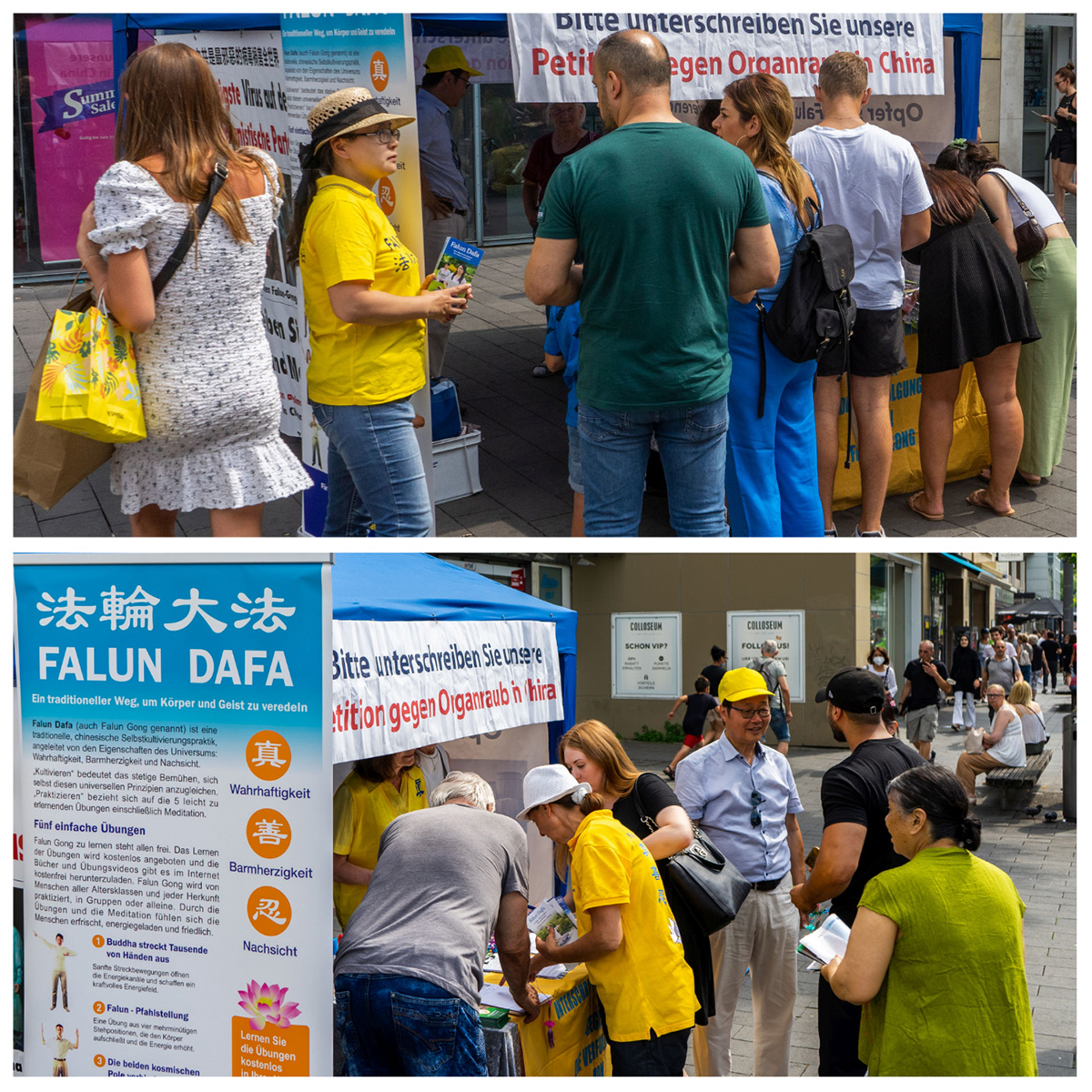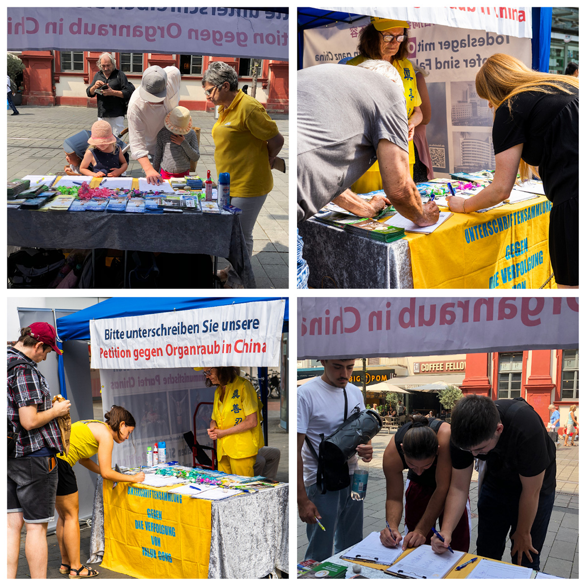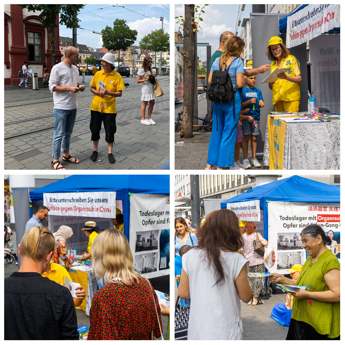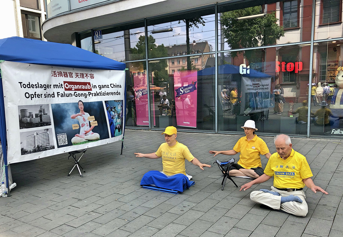 【明慧网二零二二年七月三十日】二零二二年七月二十三日,德国曼海姆和海德堡地区法轮功学员在曼海姆(Mannheim)集市广场对面的步行街举办了讲真相活动。向民众讲述法轮功学员在中国遭受的持续23年的迫害,并征集签名反迫害。同时传播法轮大法真、善、忍的修炼理念。