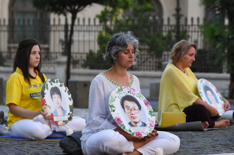许多意大利和外国游客驻足观看,他们被悠扬的炼功音乐及优美舒缓的炼功动作以及说明迫害的海报所吸引。许多人在呼吁结束迫害的请愿书上签字。