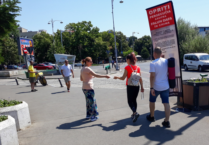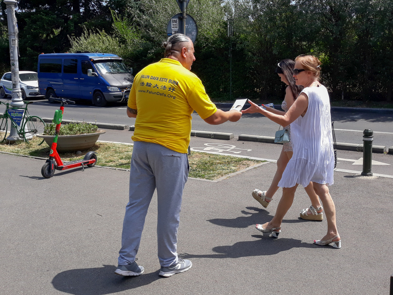 二零二二年七月十五日,法轮功学员首先来到布加勒斯特革命广场举行烛光守夜,悼念被中共迫害致死的中国大陆法轮功学员。七月十六日,法轮功学员在国王迈克尔一世(King Michael I)公园入口处设置真相信息台,揭露中共的迫害。