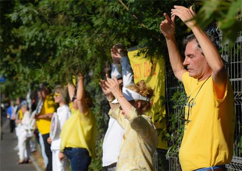 ![]() 图1:法轮功学员在苏黎世中领馆附近炼功 |