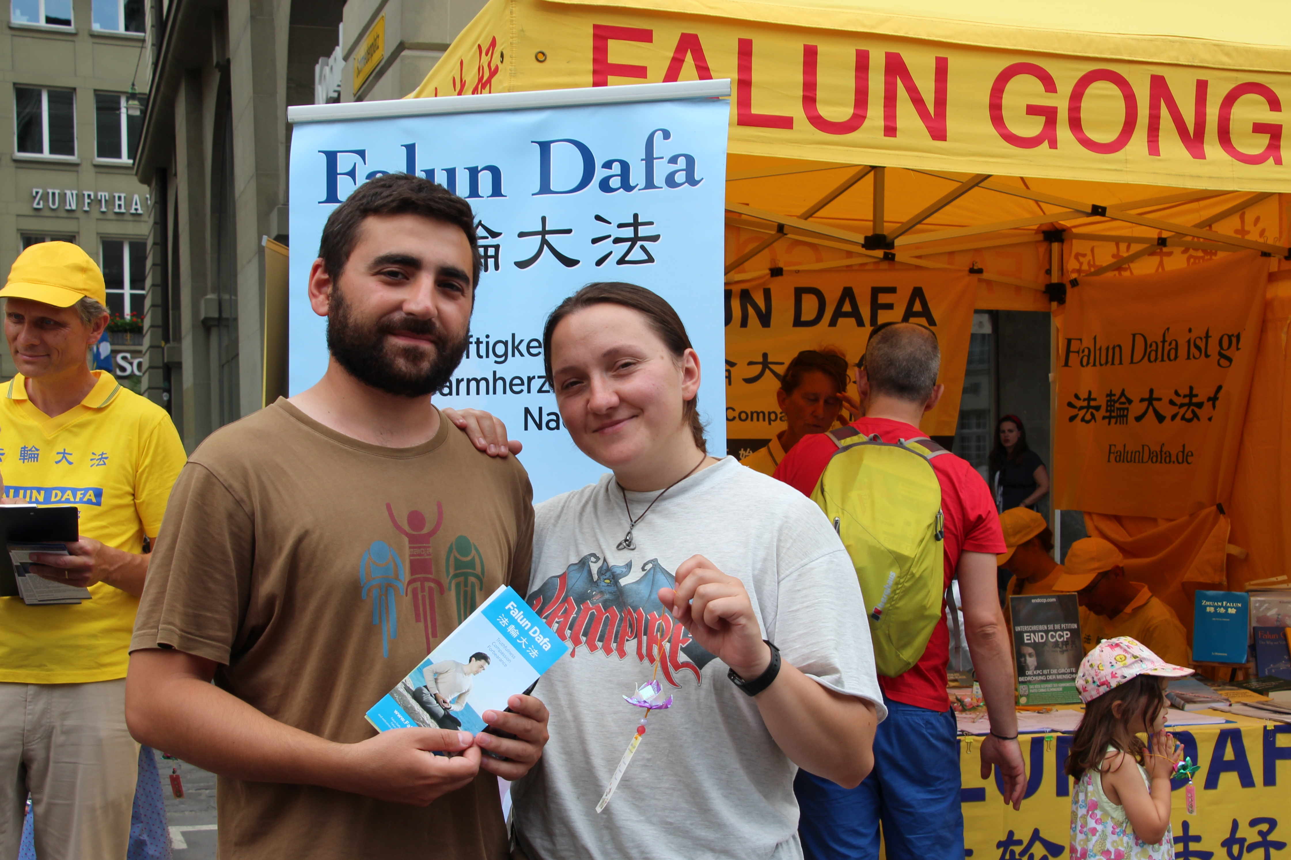 来自前苏联国家乔治亚的电子工程师伊利亚·古拉什瓦(Ilia Guluashva)正和太太在欧洲旅游,在伯尔尼看到了法轮功学员的集会,两人都签名支持法轮功学员。虽然他的英语表达并不流利,他还是谈到,他认为迫害是非常黑暗的故事,他希望让更多人了解中共“这个恶魔般的政权和系统”,并谈到希望有人看到他的签名后能感到有希望,自己也签名支持。