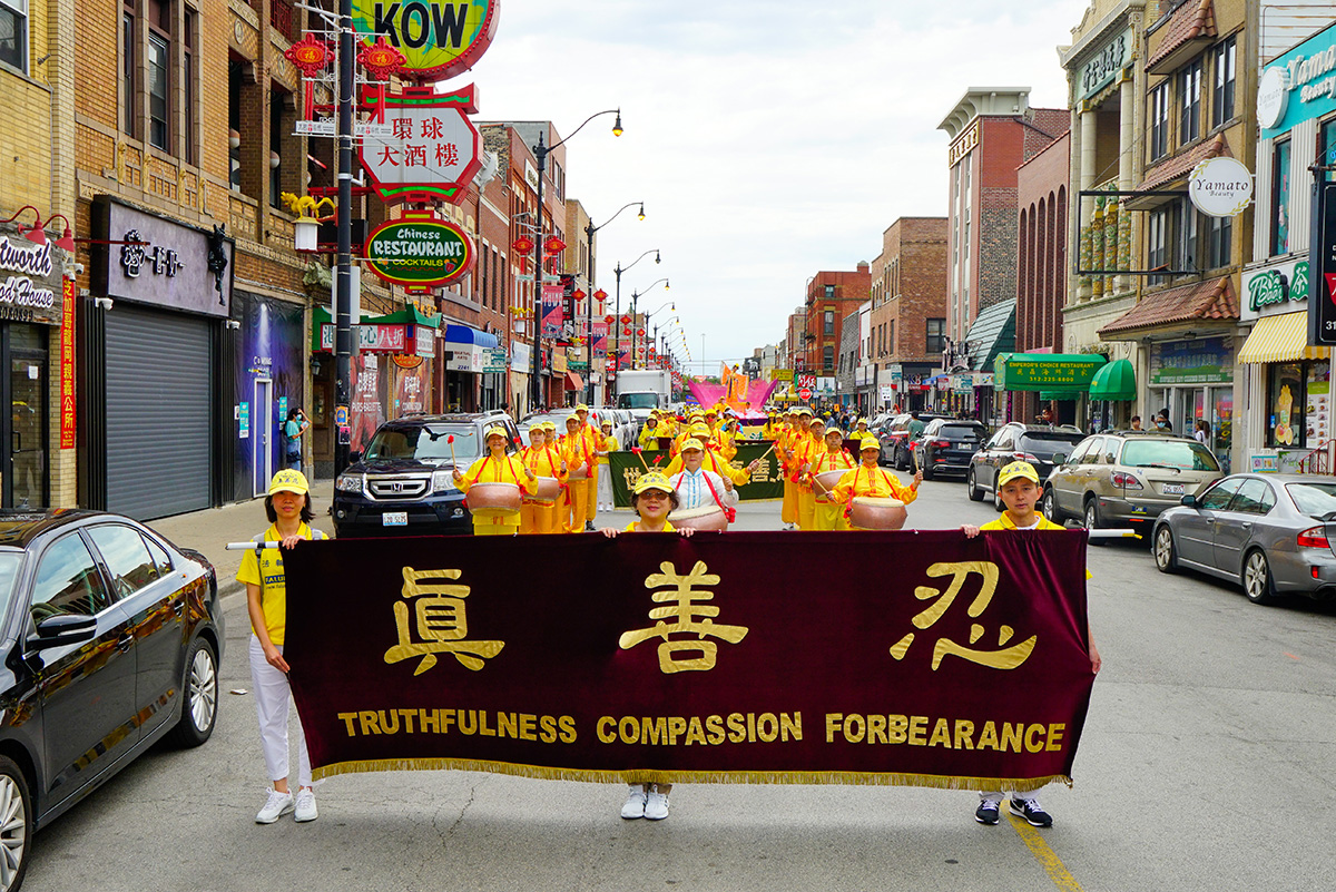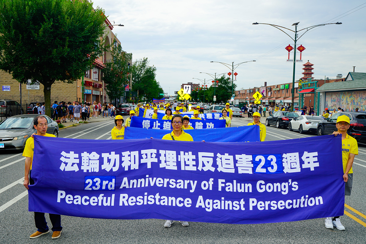 【明慧网二零二二年八月十五日】二零二二年八月十三日,来自美国中部十几个州的部份法轮功学员汇集到美国第三大城市芝加哥,在中国城举行游行,展示法轮功的美好,庆祝四亿中国人脱离中共邪党相关组织。他们随后在在芝加哥中共领馆前集会,抗议中共二十三年来对法轮功学员的残酷迫害。