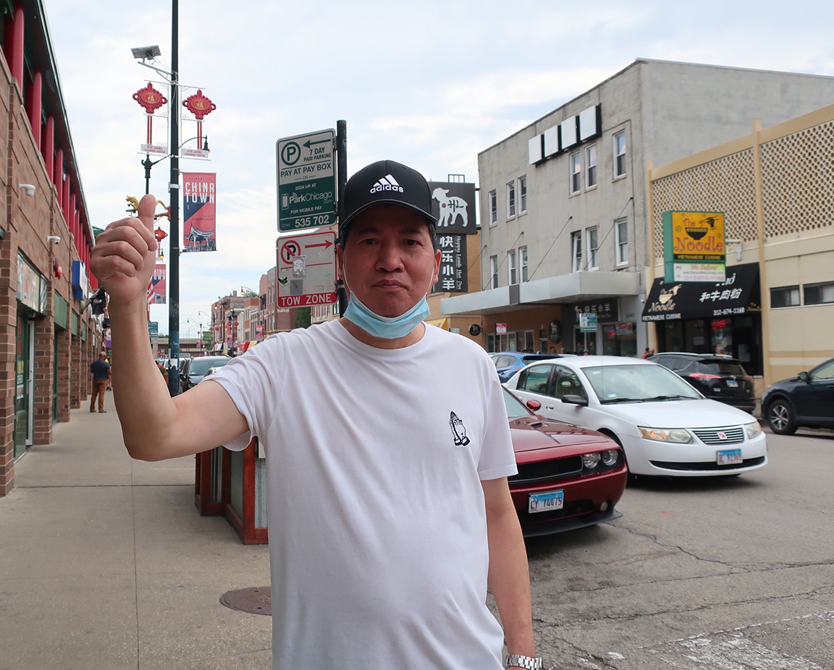 居住在芝加哥中国城主街旁的邱先生,一九九九年就来到了美国。他表示,“我年年都能看到法轮功。”并竖起大拇指道:“不错!”