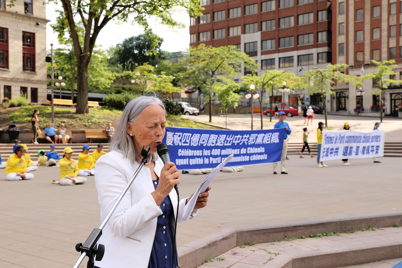 ![]() 图2:集会活动协调人法轮功学员米洛(Nicole Milot)女士表示,举办集会是为了庆祝勇敢的4亿中国人退出中共及相关组织,同时让更多的魁北克人、加拿大人认识到共产主义的危害。 |