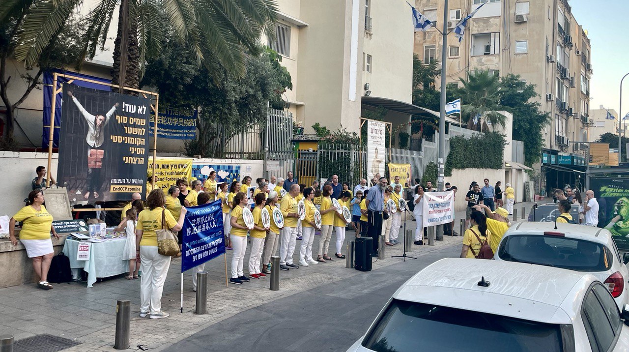 【明慧网二零二二年八月二日】二零二二年七月二十日,以色列法轮功学员在中共驻特拉维夫大使馆前集会,抗议中共对法轮功长达二十三年的迫害。以色列国会议员莫西·拉兹(Mossi Raz)等多名政要发来信函或到场声援,谴责中共对法轮功的迫害。