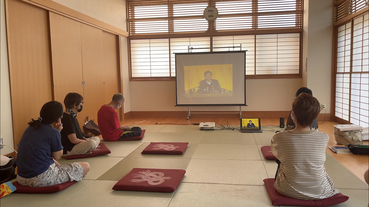 主办人德永女士介绍了法轮大法在世界弘传的情况,之后与会者聚精会神地观看法轮功创始人李洪志先生的《广州讲法》录像,他们之中有的是第一次接触法轮功。放映结束后,与会者互相交流心得感想,场面祥和宁静。