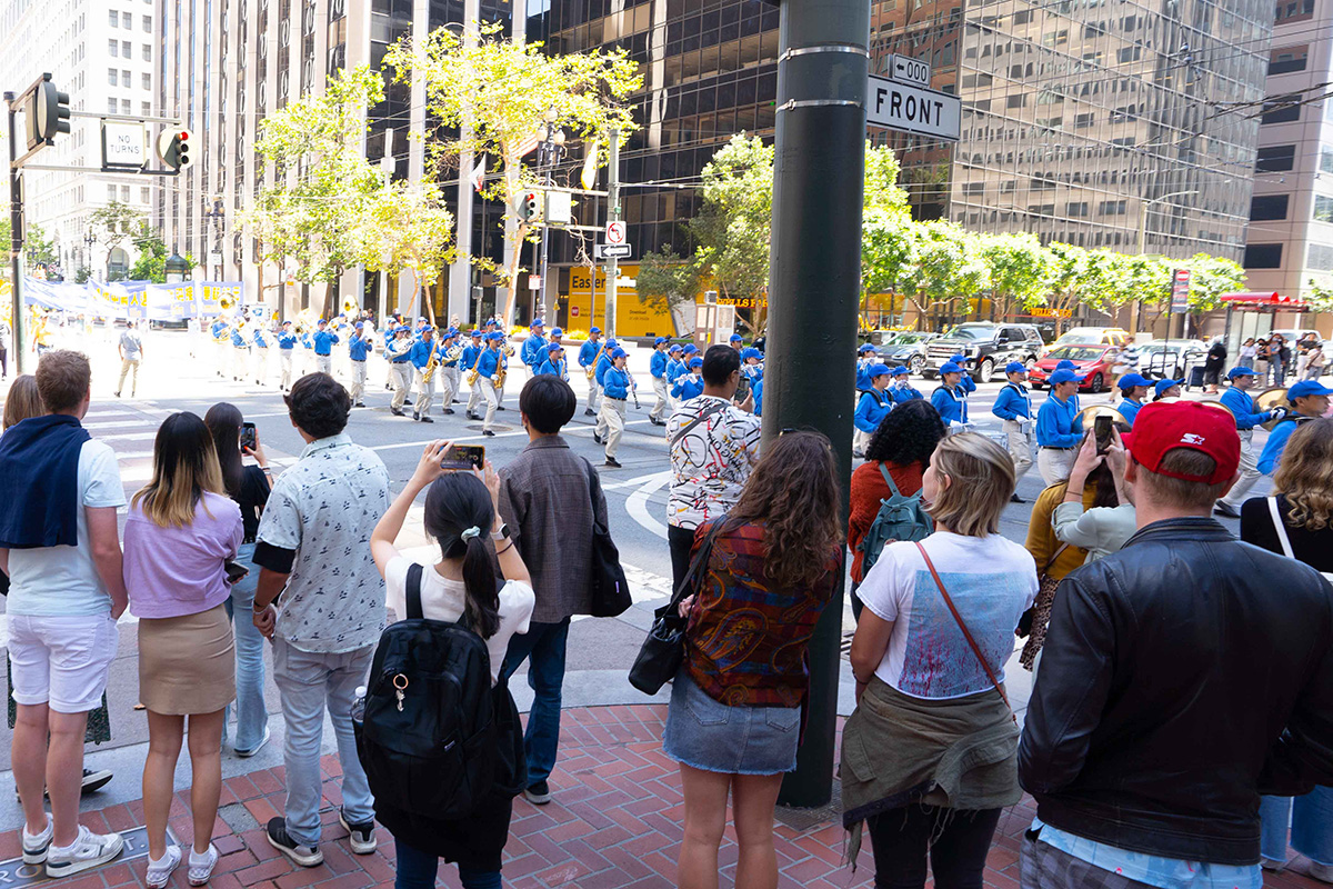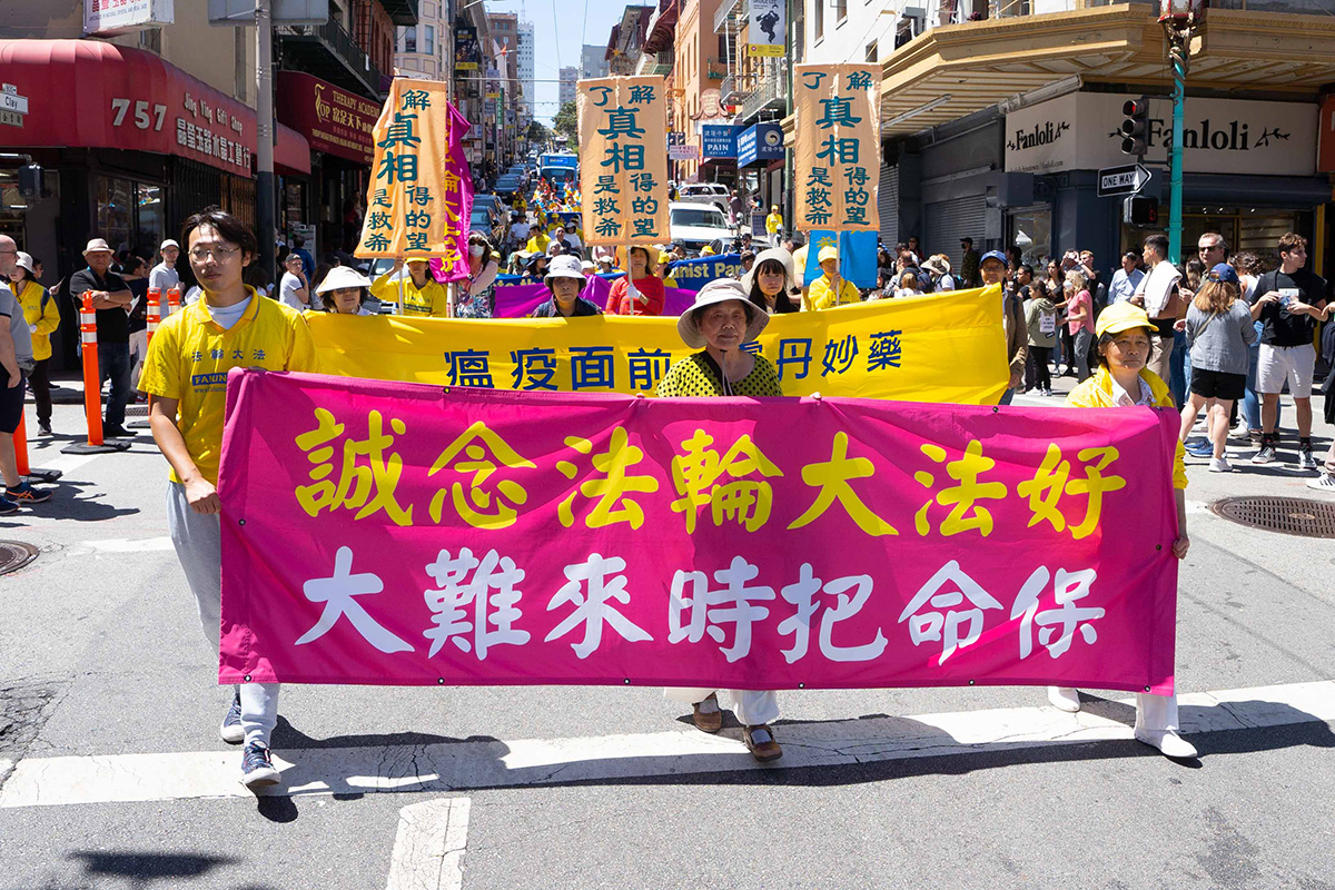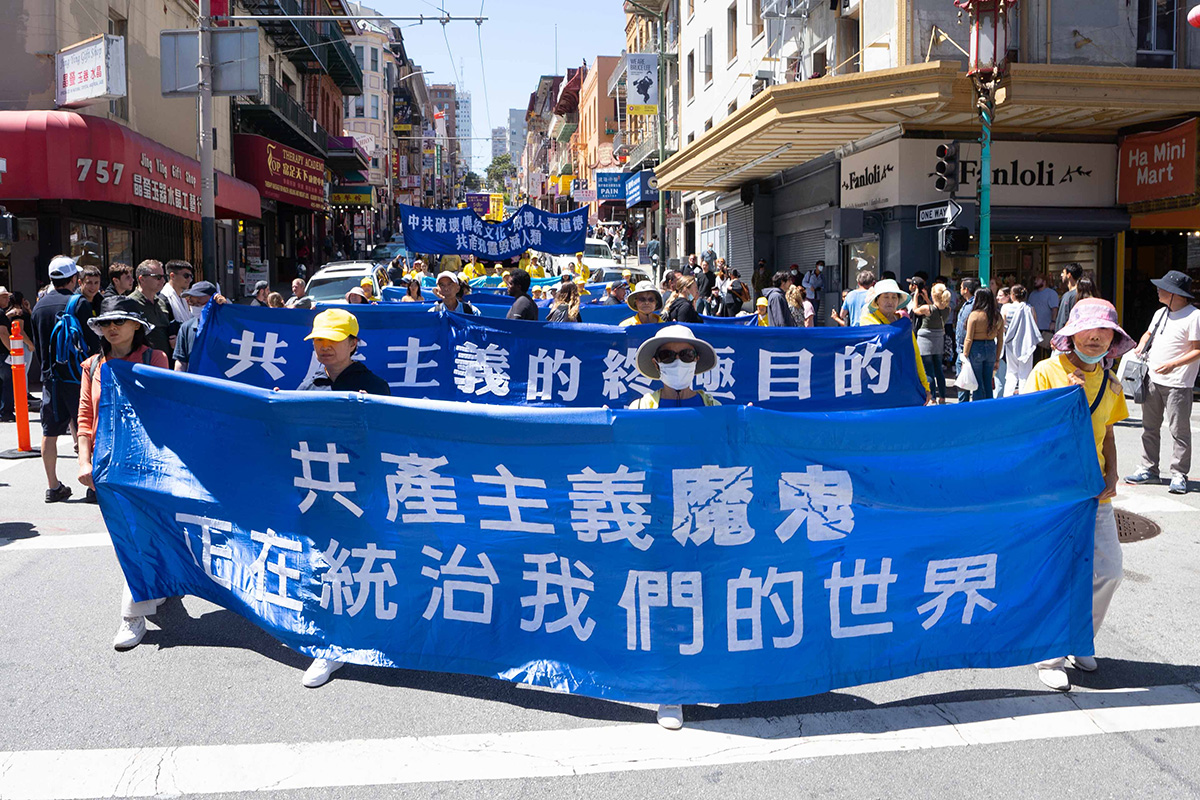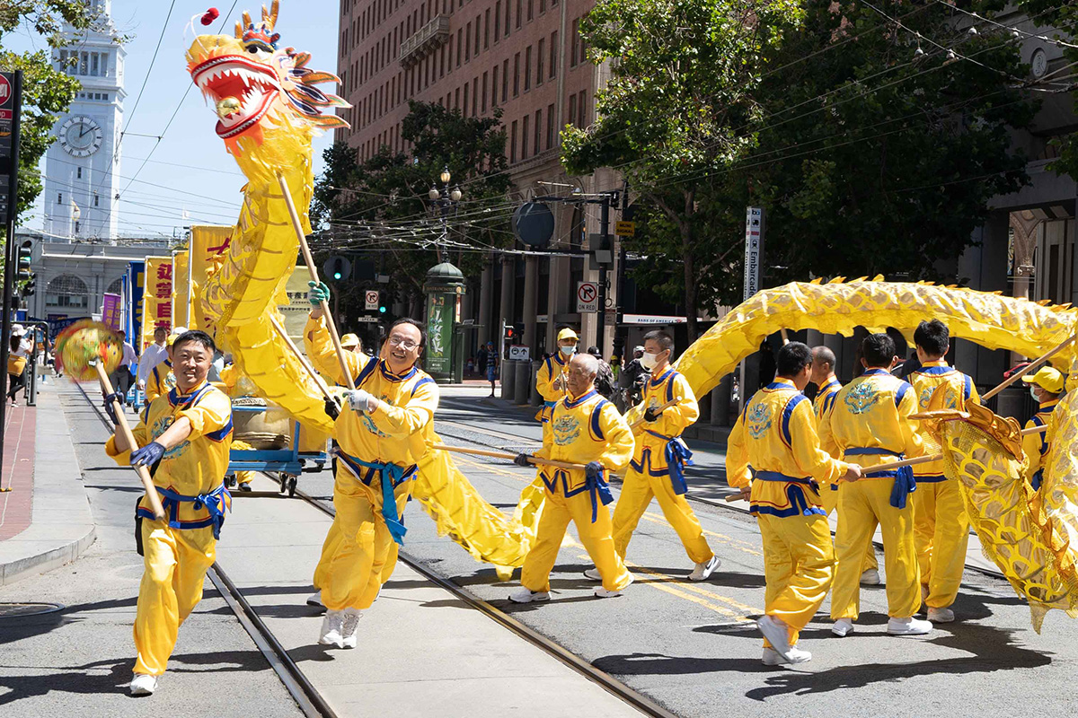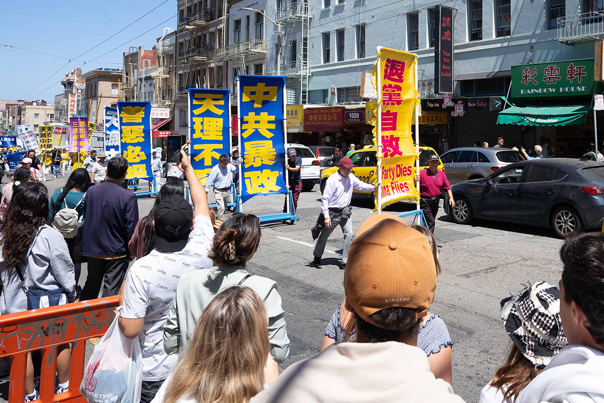 星期六上午十二点,庆祝的游行队伍组成方阵,从旧金山渡轮大厦出发,在旧金山主要街道游行,然后进入唐人街,最后抵达唐人街花园角广场。参加游行的民众呼吁中国同胞,认清中共本质,早日退出中共,获得美好未来。