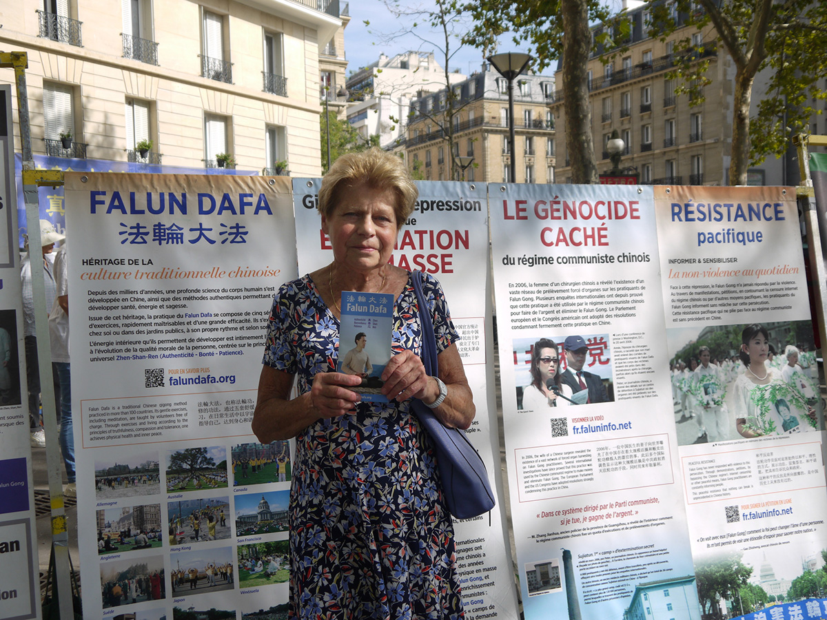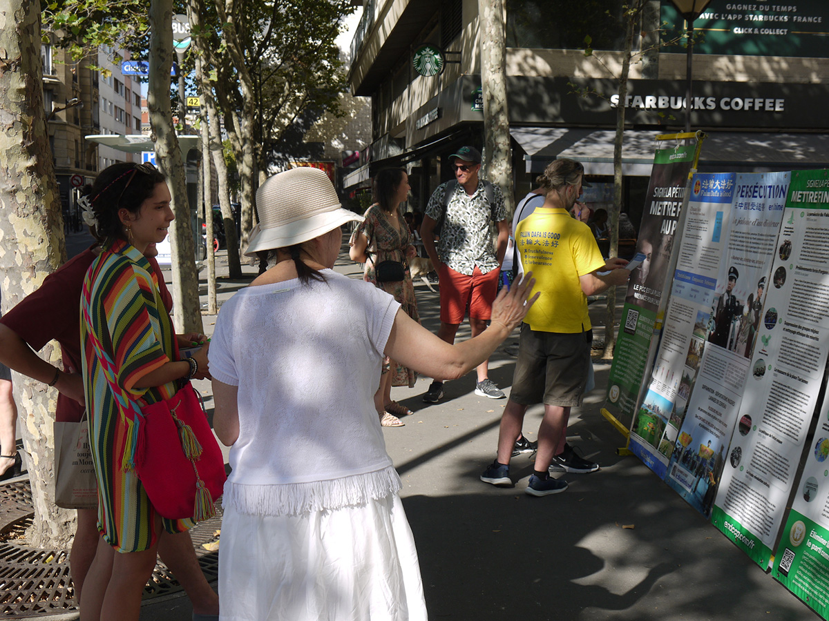 一位巴黎医院急诊科医生与法轮功学员交谈了很久,他说:“法轮功修炼和佛道两家的修炼有着相似的理念,能唤醒人们的意识,中共当然害怕了,所以要迫害。”他认为法轮功学员很有勇气,要继续下去,让更多的人知道迫害真相。