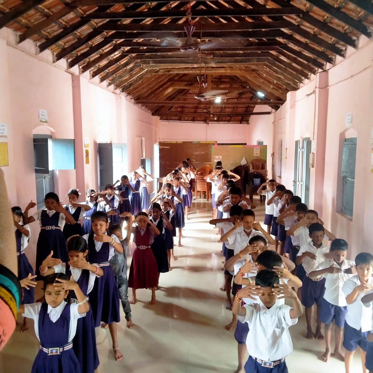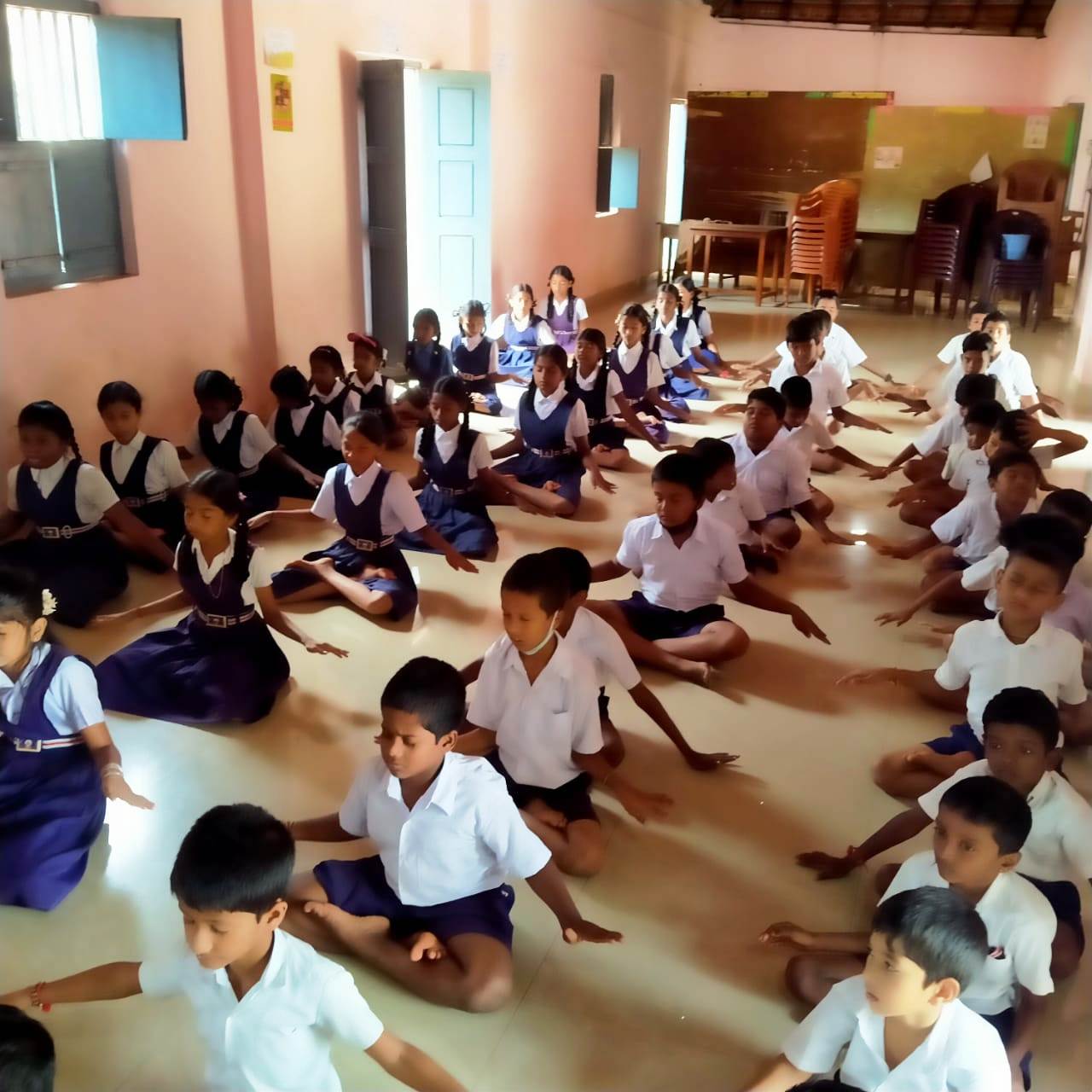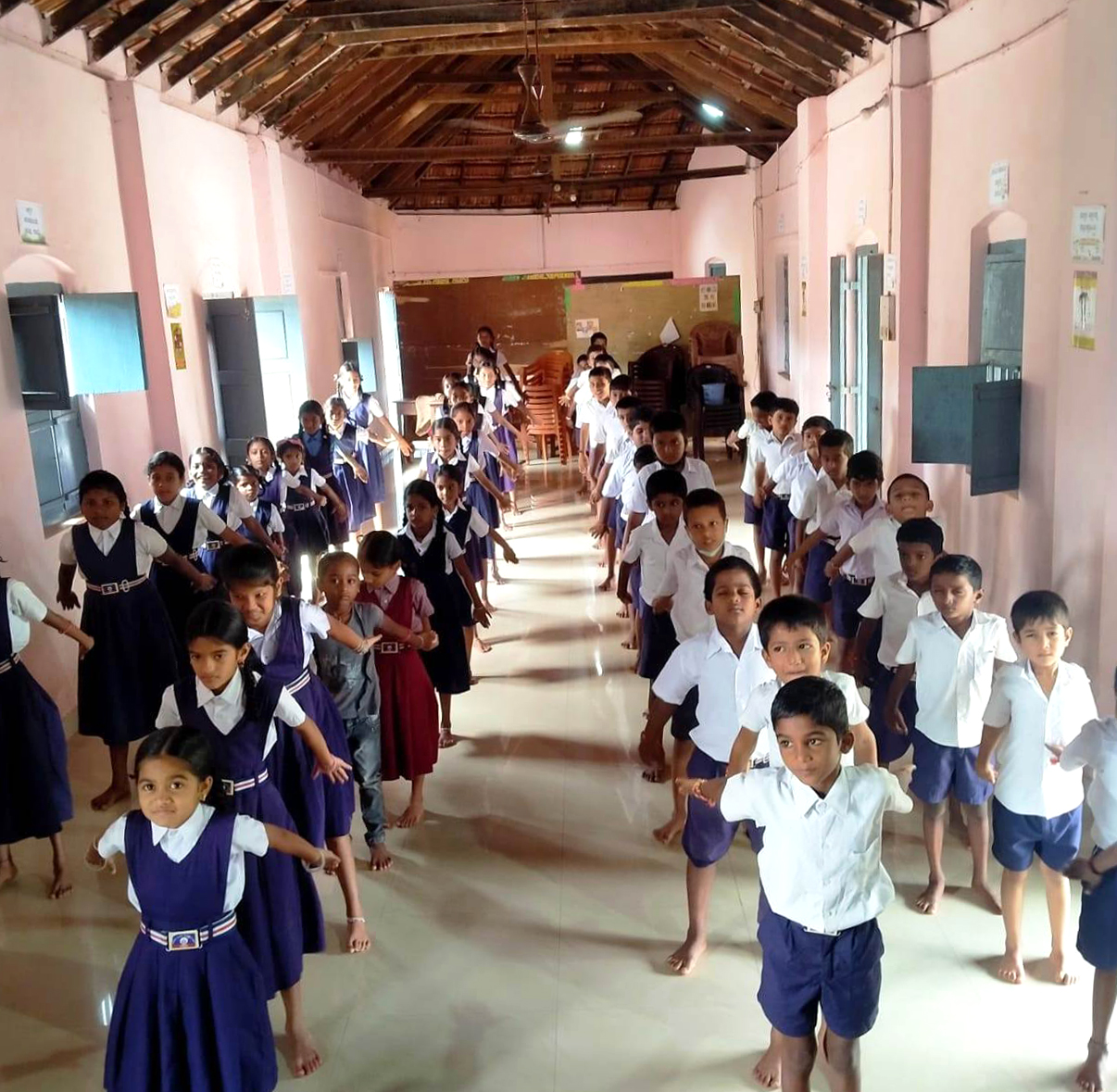 二零二二年八月五日,法轮功学员巴拉蒂造访学校,并教孩子们炼功。老师们请她每个星期六来教功。她信守承诺,并在接下来的两个星期六去学校教功。