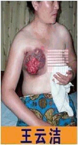◎王云洁,女,四十岁。二零零二年五月十四日下午三点钟,王云洁在市场卖货,被大连泡崖子派出所警察绑架。六月四日,被绑架到沈阳马三家劳教所,郭铁英等狱警用两根高压电棒同时电击乳房数小时,致使整个乳房完全溃烂。第二天他们强行把她双腿双盘上,用布条把腿、头紧紧绑在一起成球状,双手反铐背后,吊了七个小时。从此,她再也不能正常坐、立和行走了。