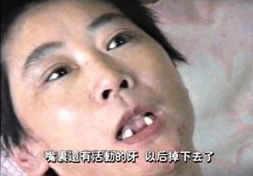 图9:李萍去世前的照片图10:恶警和犯人用木棒把李萍的牙齿撬掉多颗