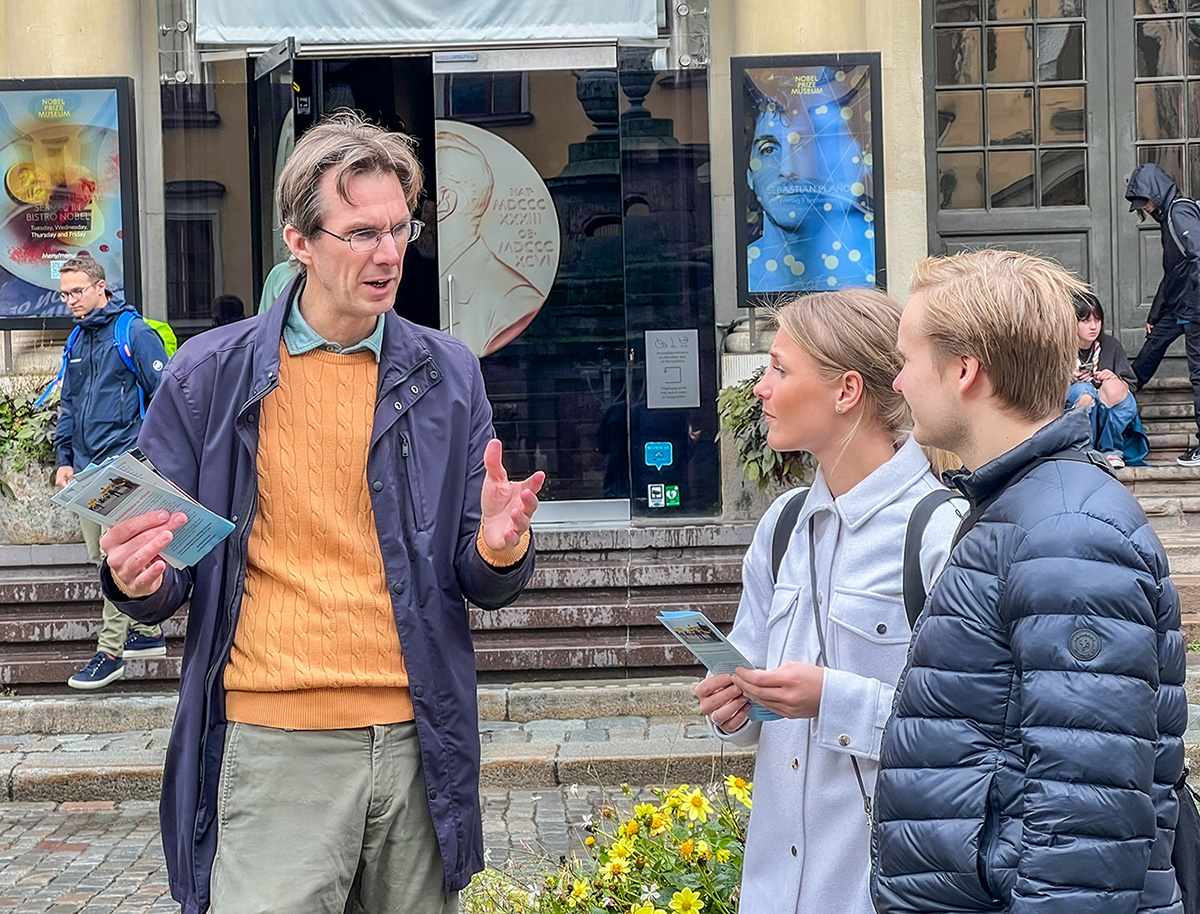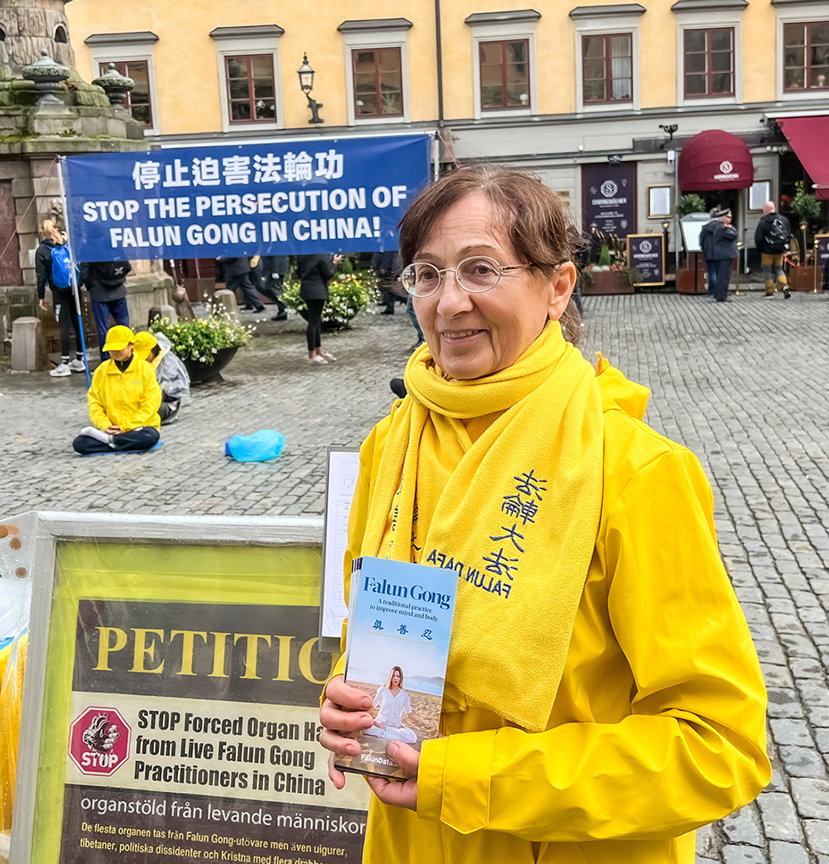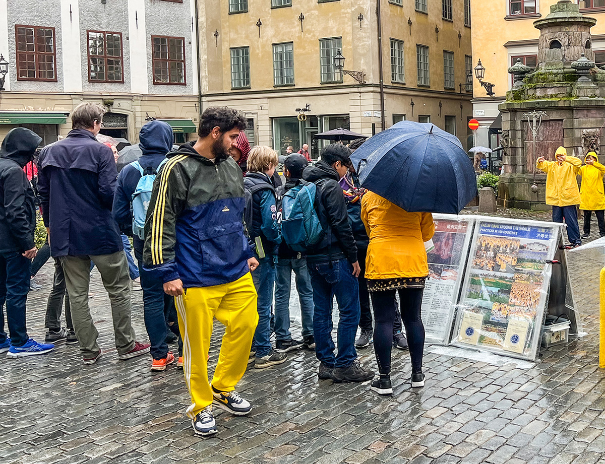 二零二二年九月份每个周五、周六两天的下午,法轮功学员们都在斯德哥尔摩诺贝尔博物馆前举办讲真相活动,向来自世界各地游客及当地民众展示大法的美好,揭露中共迫害法轮功及活摘法轮功学员器官的罪行。人们了解真相后,纷纷签名支持制止迫害,谴责中共暴行。其中包括一对瑞典夫妇安(Ann)和她的先生。