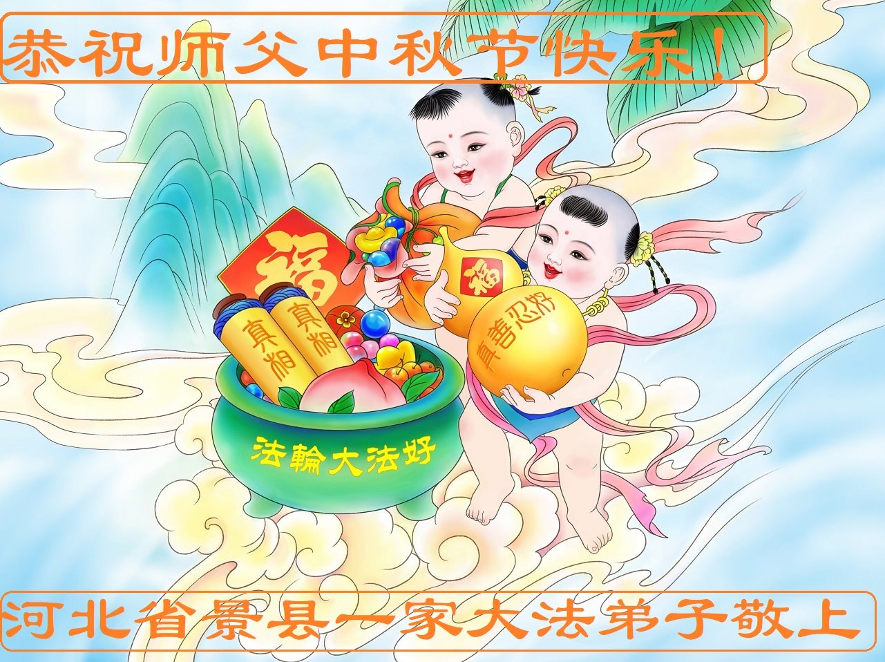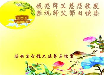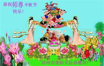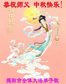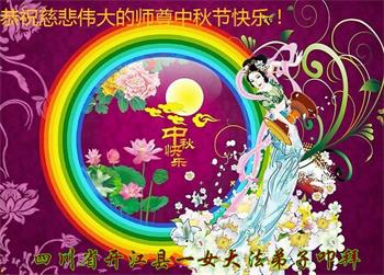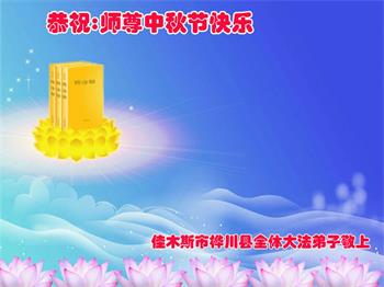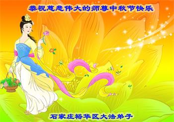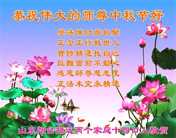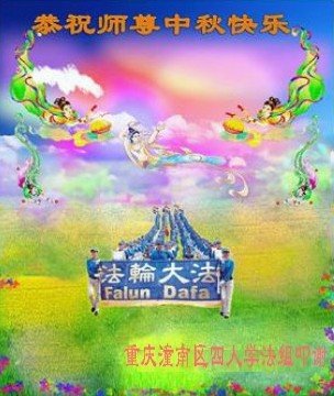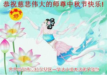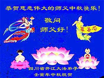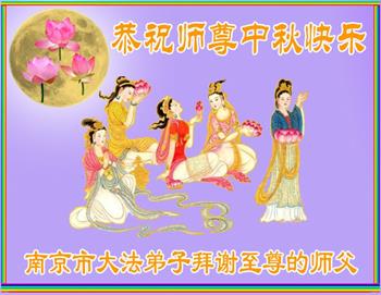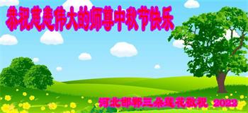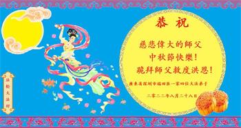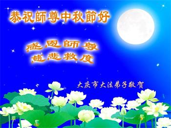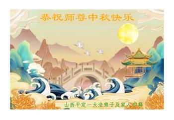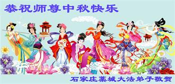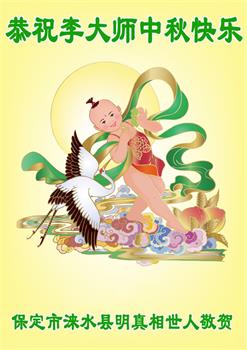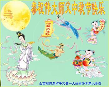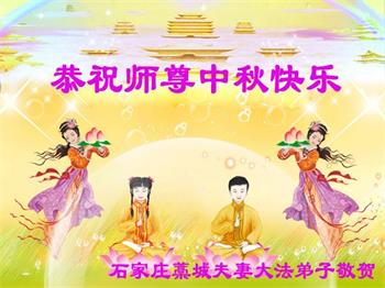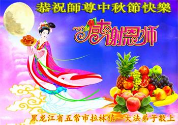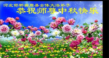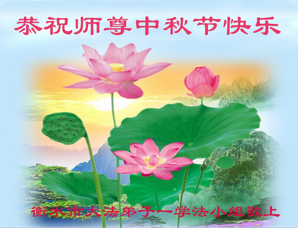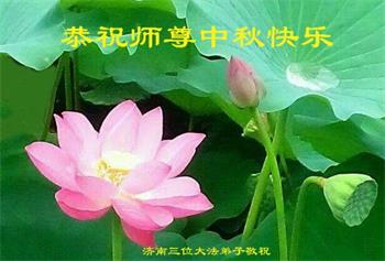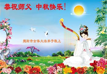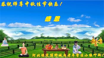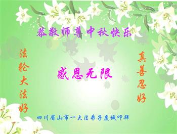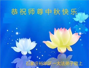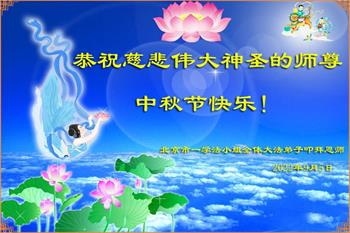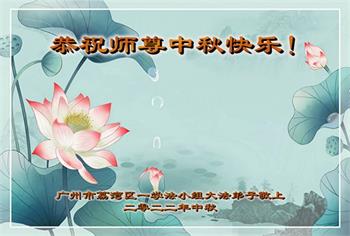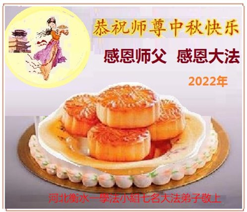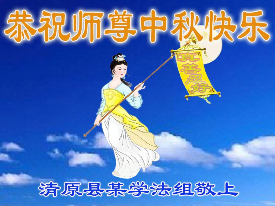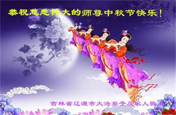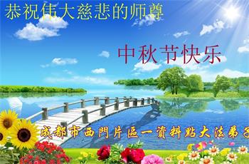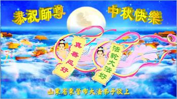湖北省黄冈市一学法小组大法弟子在贺词中说:“月到中秋分外明,每逢佳节倍思亲。在这美好的时刻,我们十分想念师尊,伟大的师尊所承受的、付出的,弟子不知道用何语言来形容表达。在正法最后时刻,唯弟子勇猛精進,遵师言,做好三件事,快救人,多救人。”