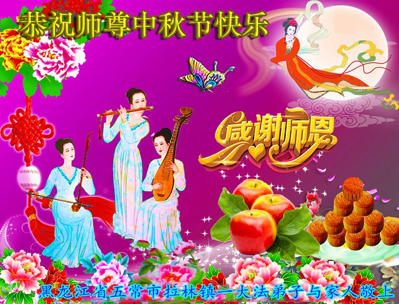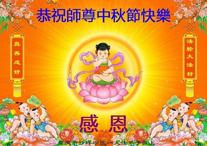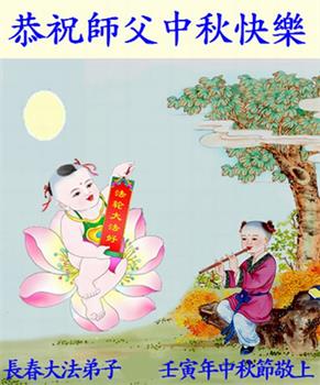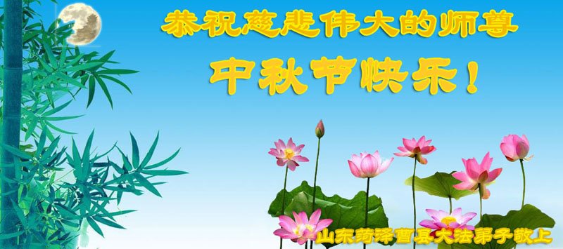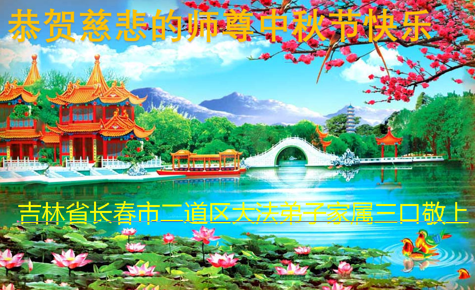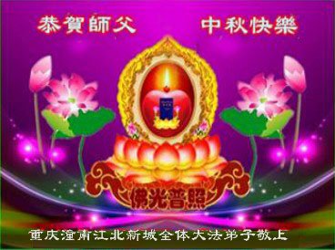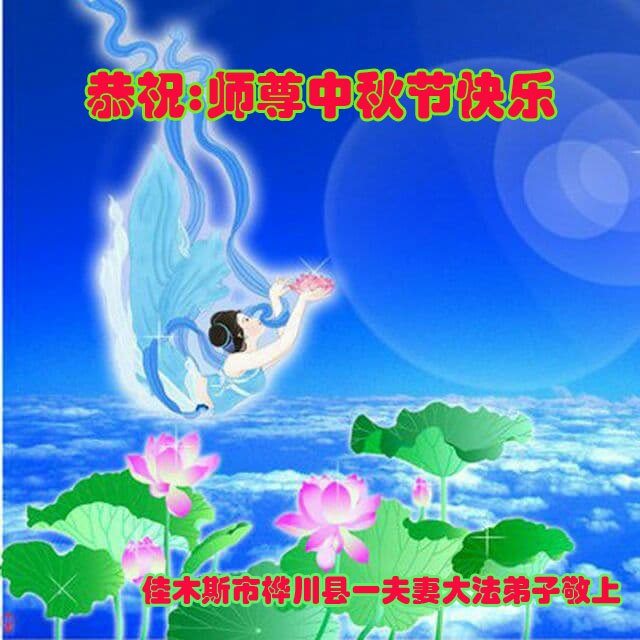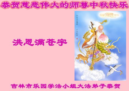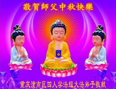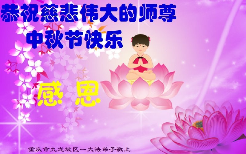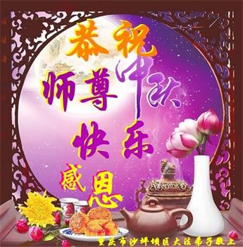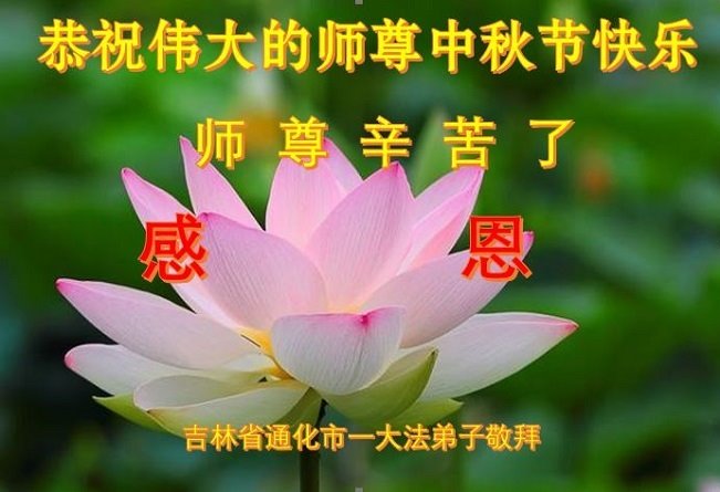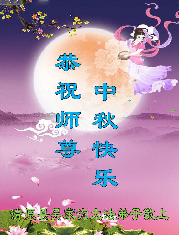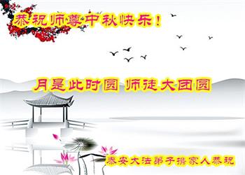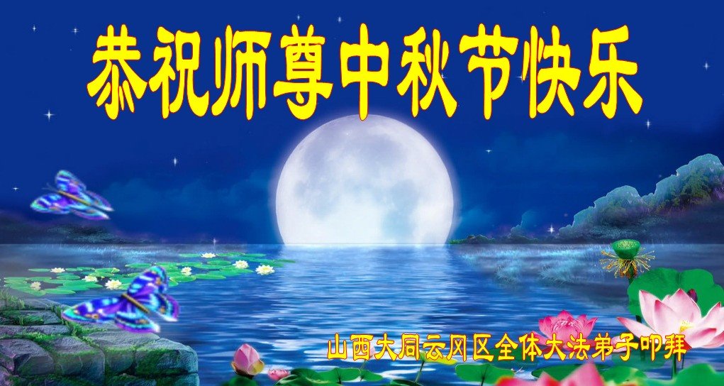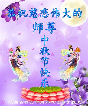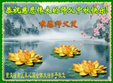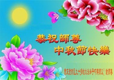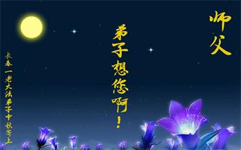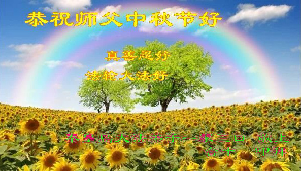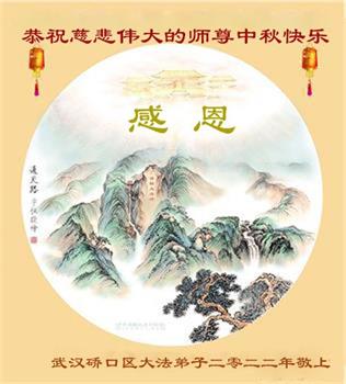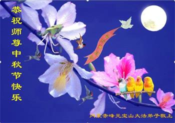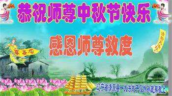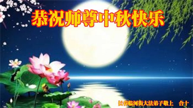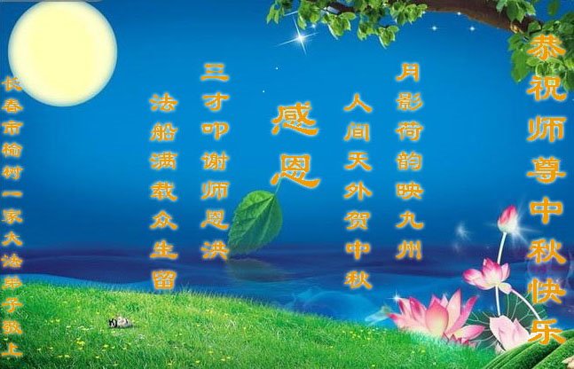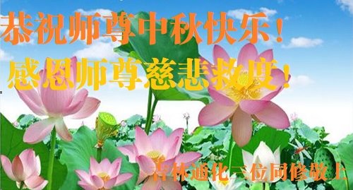 是师父的巨大承受才使我们又迎来了一个温馨的中秋。弟子们怀着感恩的心恭祝恩师中秋佳节快乐!历史走到今天的关键时刻,诚念“九字真言”而逢凶化吉、遇难呈祥的真实例子,证实了法轮大法在人间的神奇,破除了中共的欺世谎言。弟子每一个前進的步伐都浸透着师父的心血,我们一定更加努力,踏踏实实的修好自己,抓紧救度众生,完成史前大愿!
