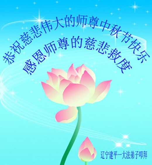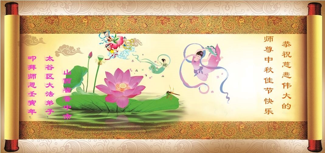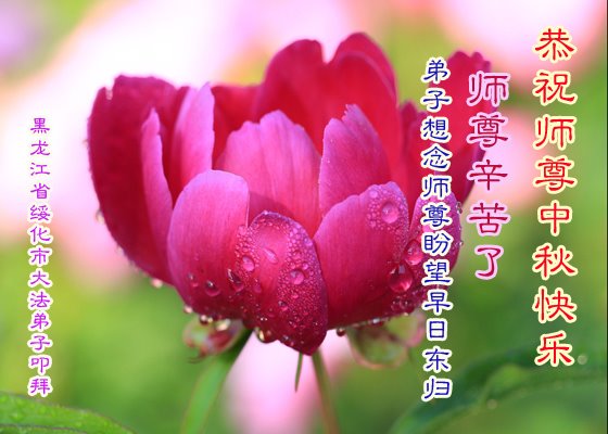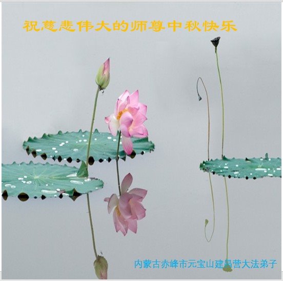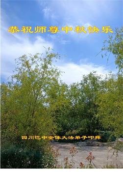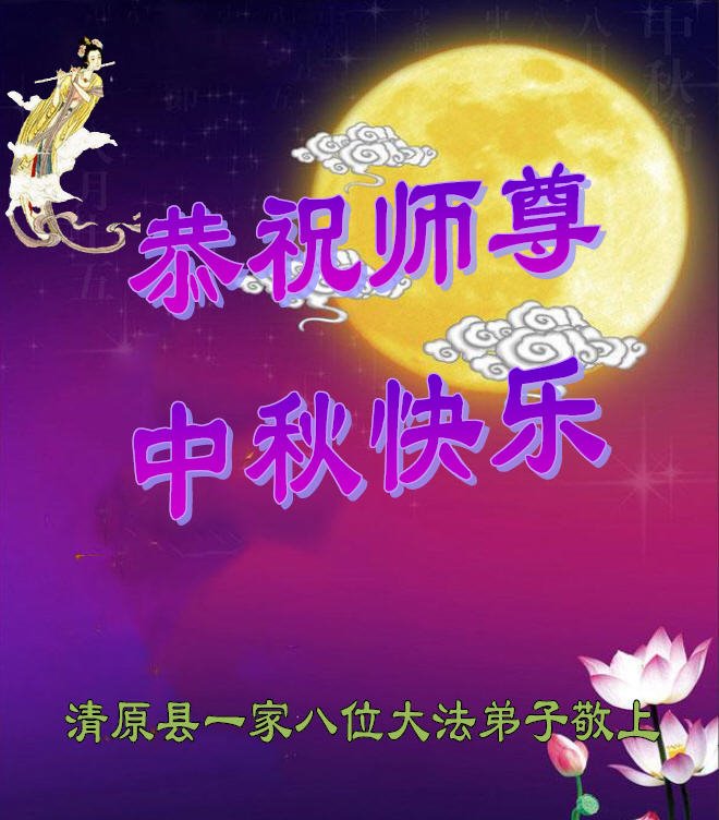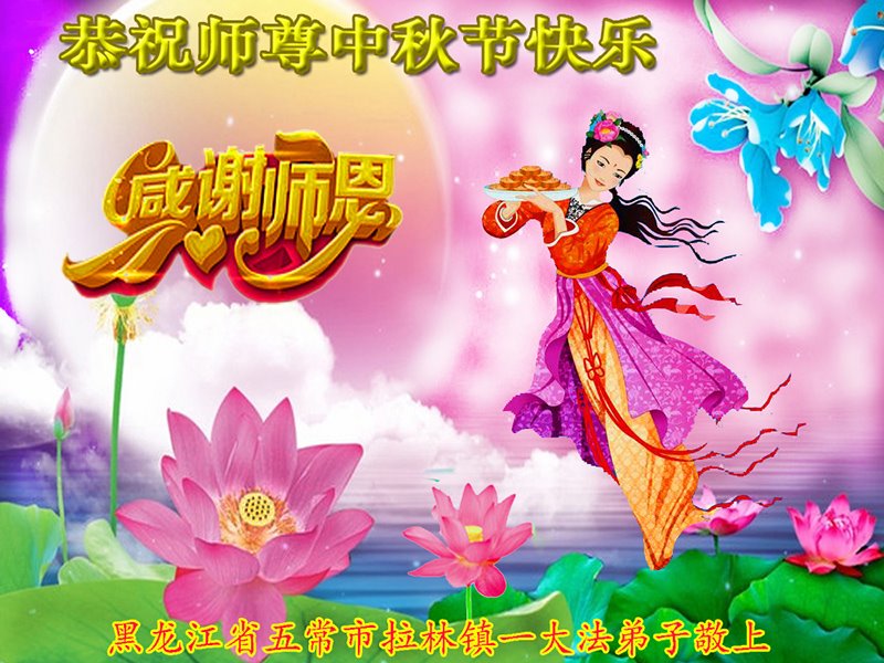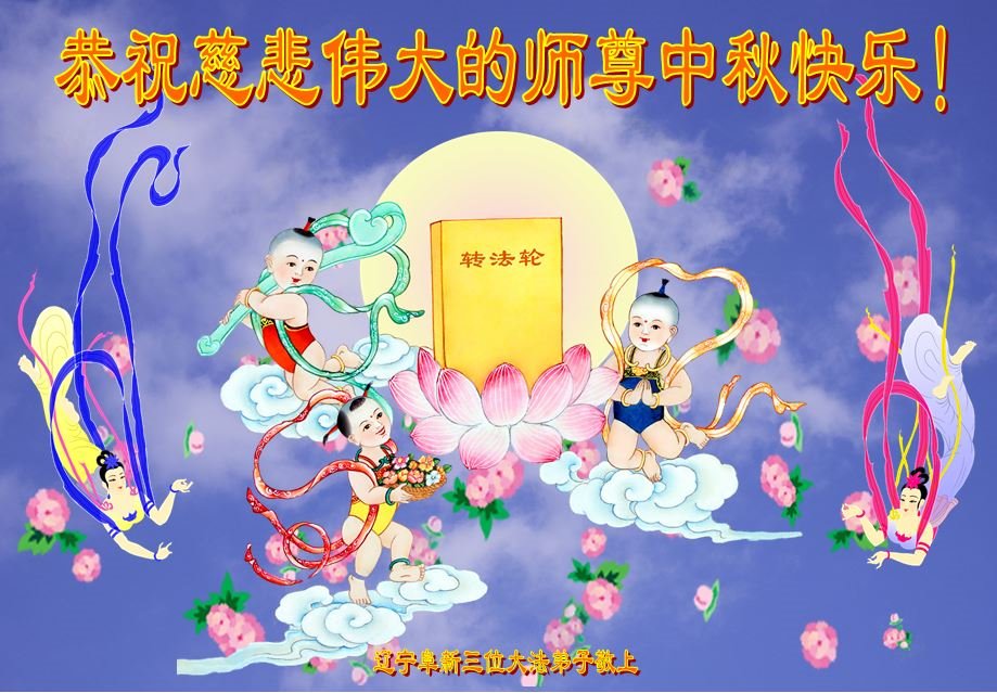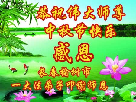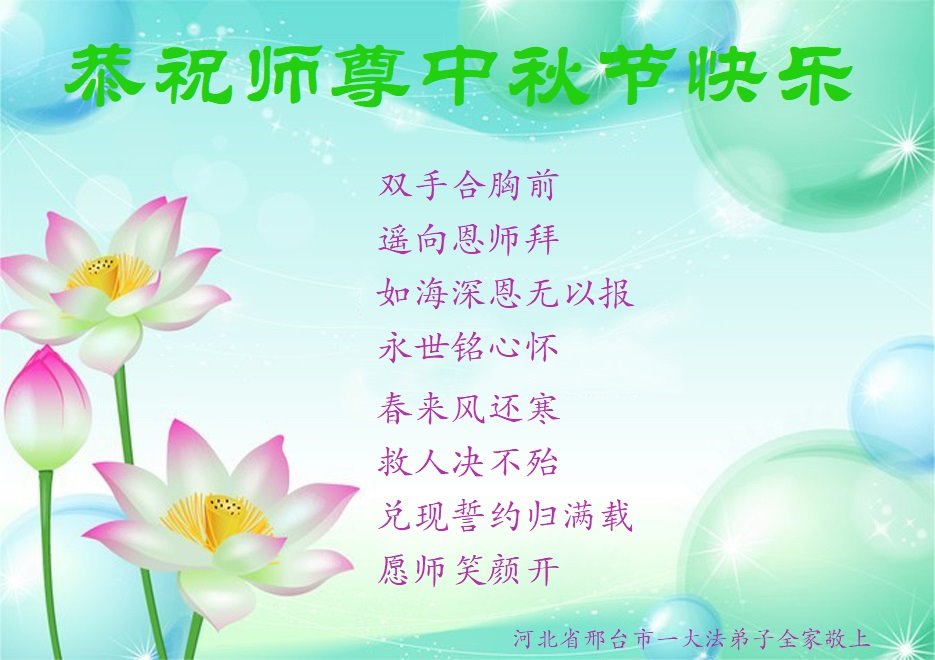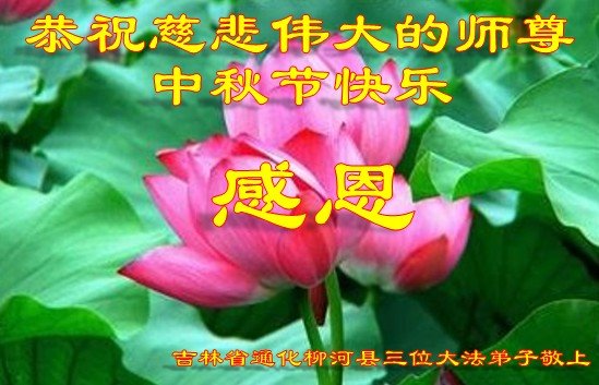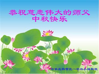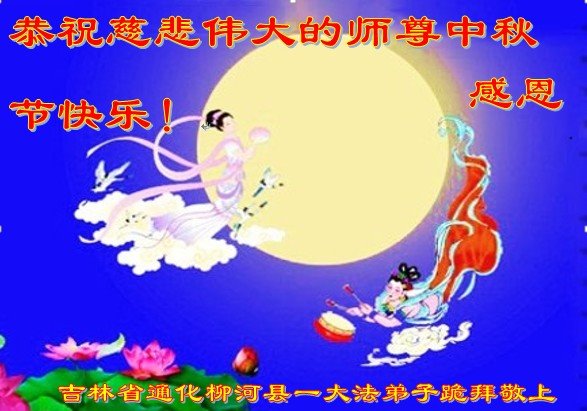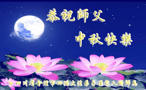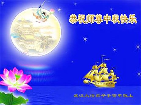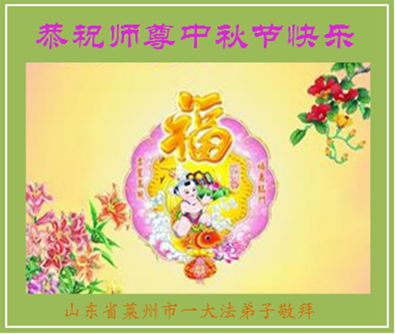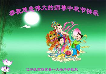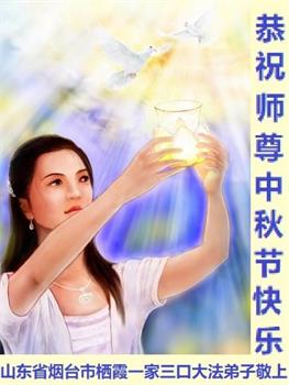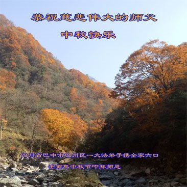 是师父的巨大承受才使我们又迎来了一个温馨的中秋。弟子们怀着感恩的心恭祝恩师中秋佳节快乐!历史走到今天的关键时刻,诚念“九字真言”而逢凶化吉、遇难呈祥的真实例子,证实了法轮大法在人间的神奇,破除了中共的欺世谎言。弟子每一个前進的步伐都浸透着师父的心血,我们一定更加努力,踏踏实实的修好自己,抓紧救度众生,完成史前大愿!