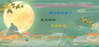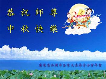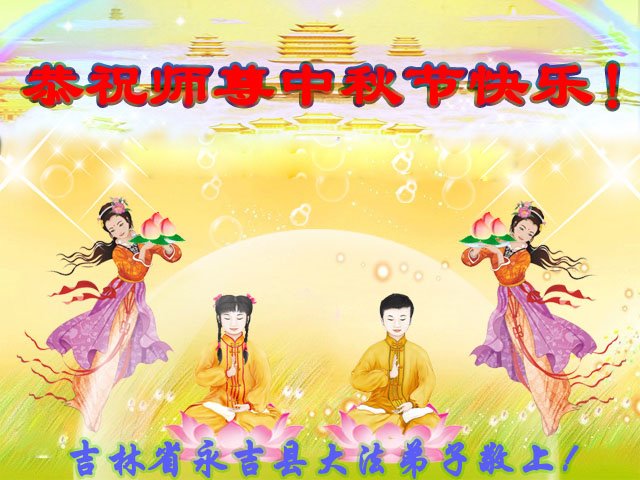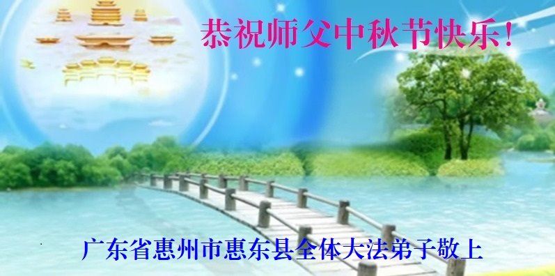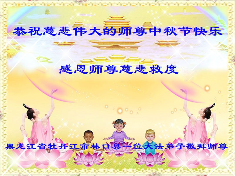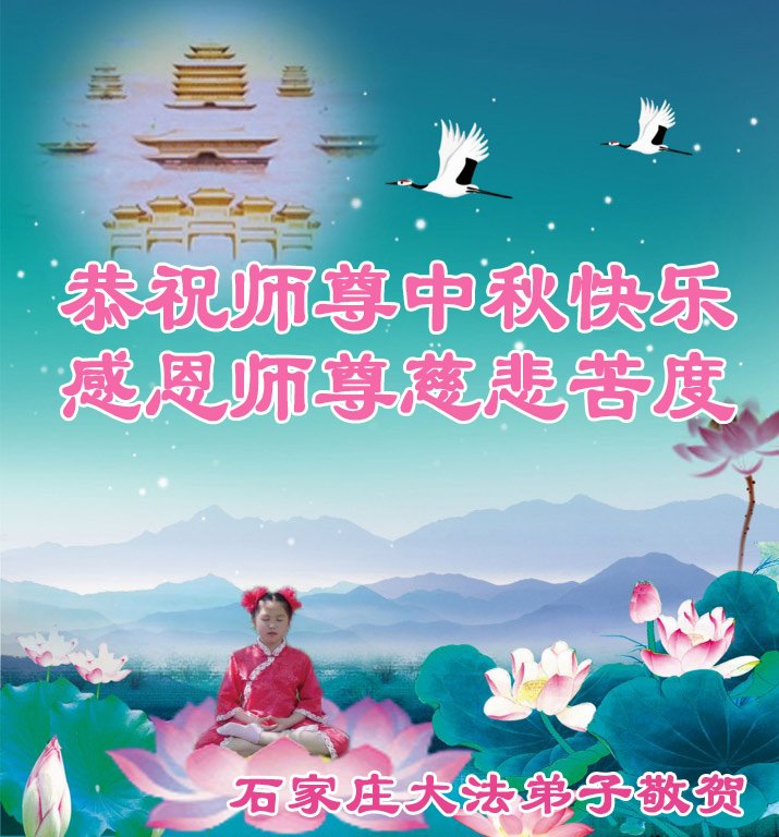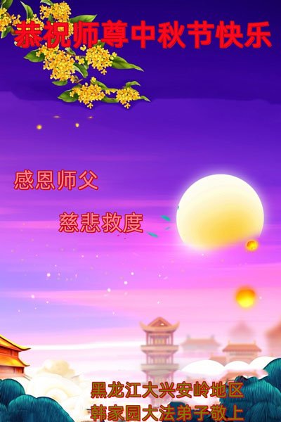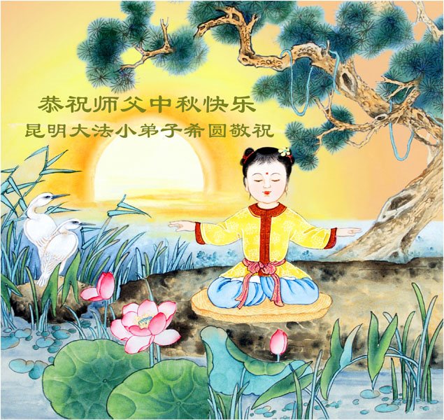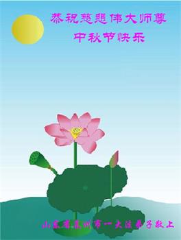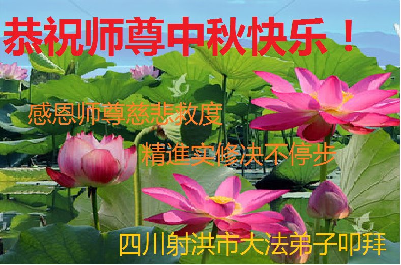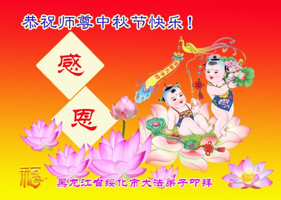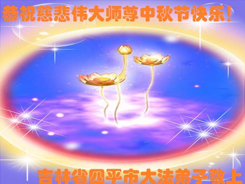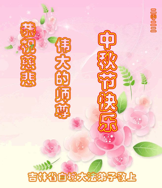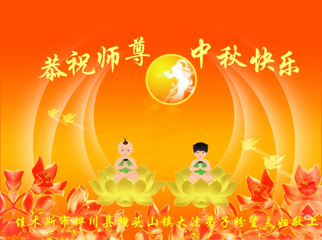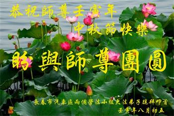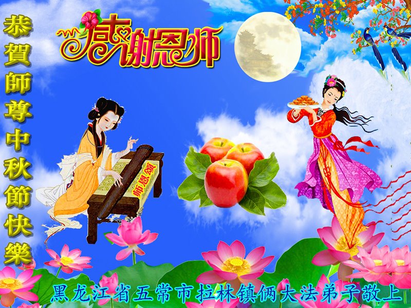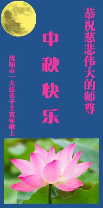 是师父的巨大承受才使我们又迎来了一个温馨的中秋。弟子们怀着感恩的心恭祝恩师中秋佳节快乐!历史走到今天的关键时刻,诚念“九字真言”而逢凶化吉、遇难呈祥的真实例子,证实了法轮大法在人间的神奇,破除了中共的欺世谎言。弟子每一个前進的步伐都浸透着师父的心血,我们一定更加努力,踏踏实实的修好自己,抓紧救度众生,完成史前大愿!