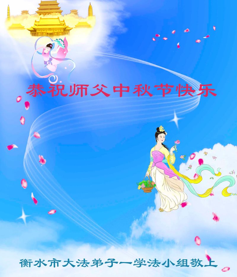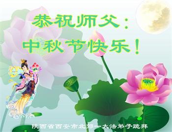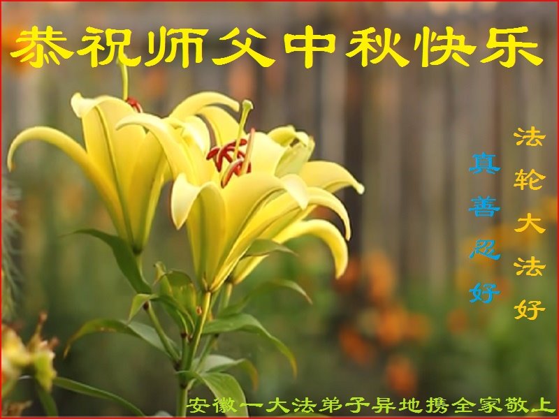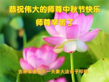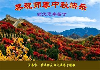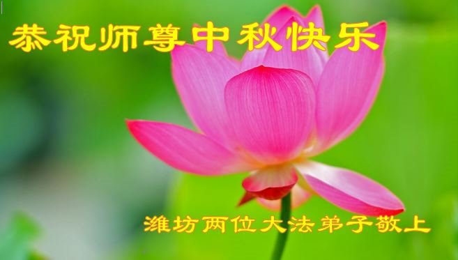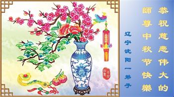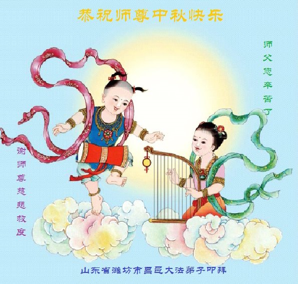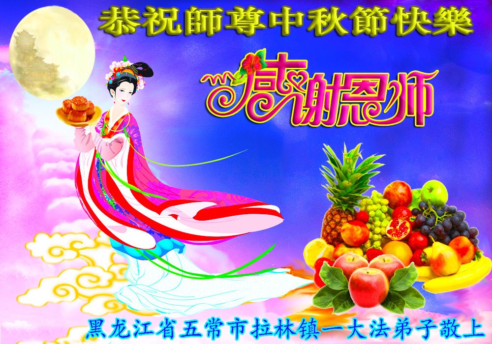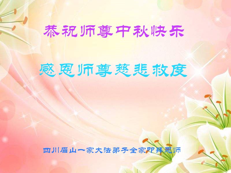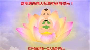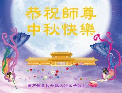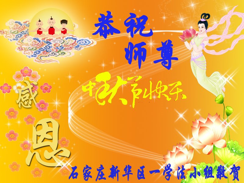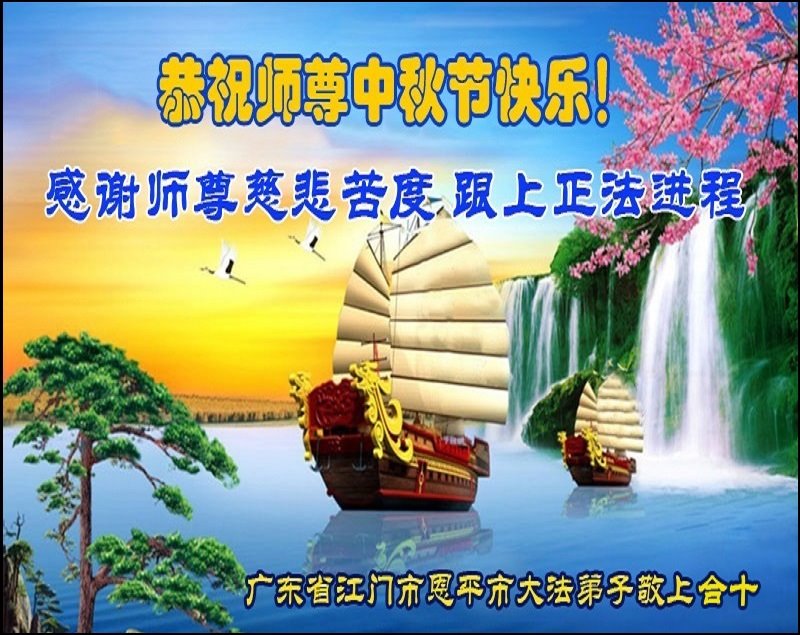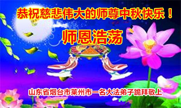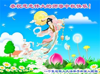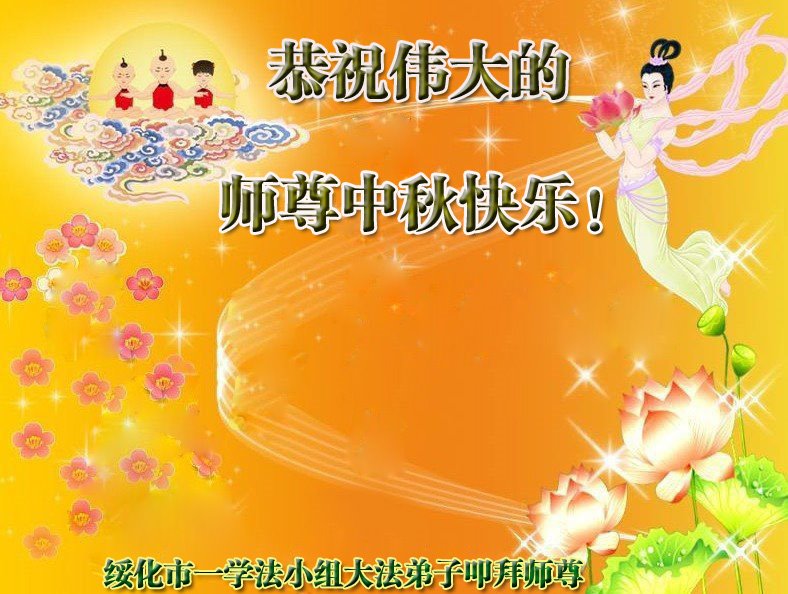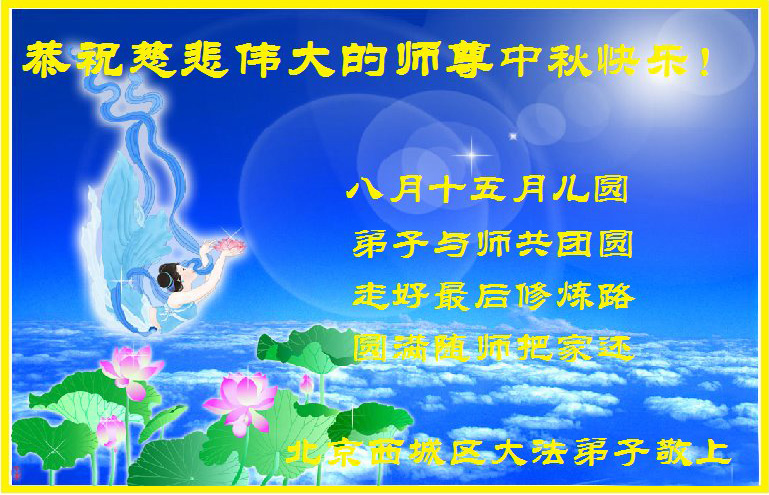 是师父的巨大承受才使我们又迎来了一个温馨的中秋。弟子们怀着感恩的心恭祝恩师中秋佳节快乐!历史走到今天的关键时刻,诚念“九字真言”而逢凶化吉、遇难呈祥的真实例子,证实了法轮大法在人间的神奇,破除了中共的欺世谎言。弟子每一个前進的步伐都浸透着师父的心血,我们一定更加努力,踏踏实实的修好自己,抓紧救度众生,完成史前大愿!
