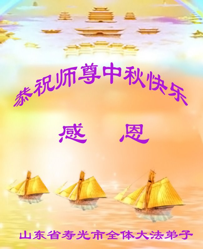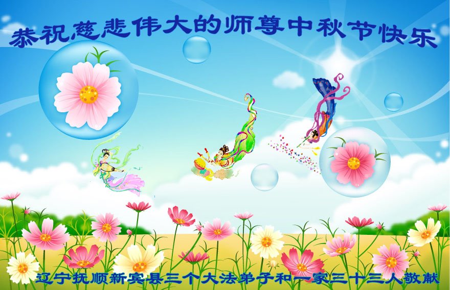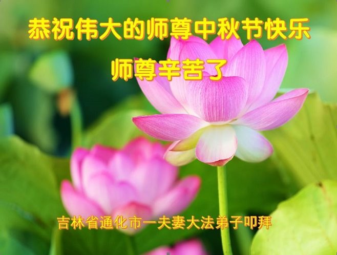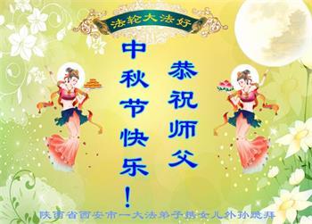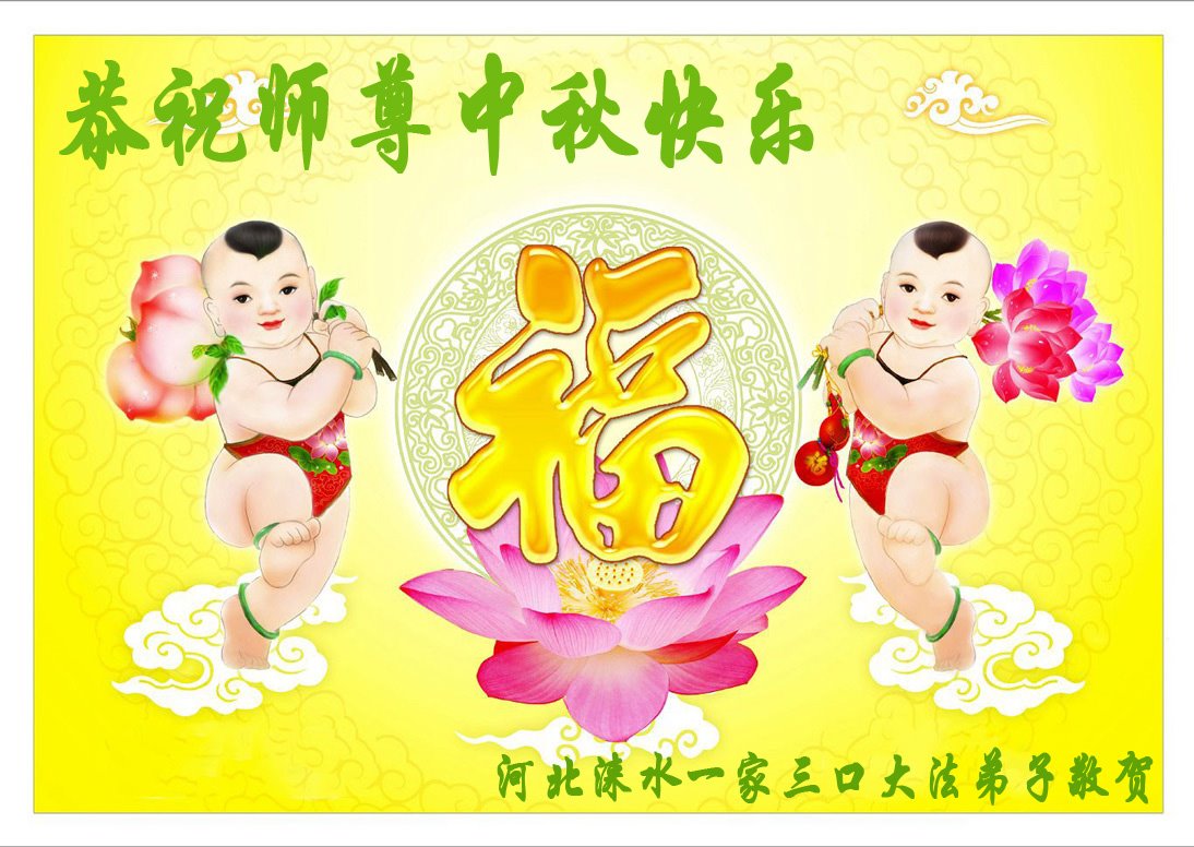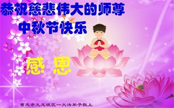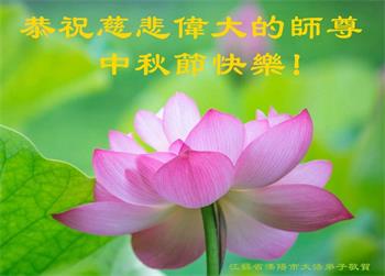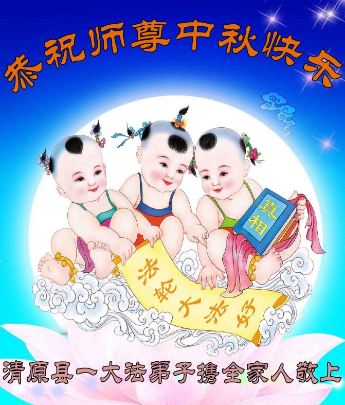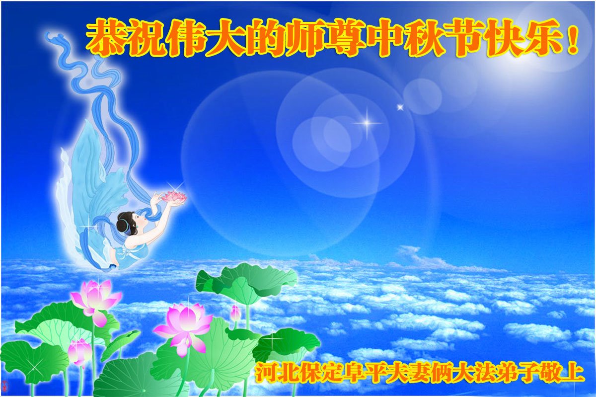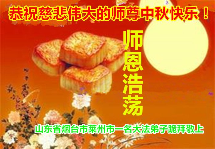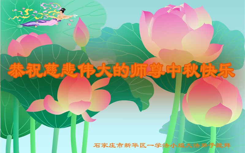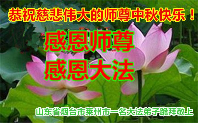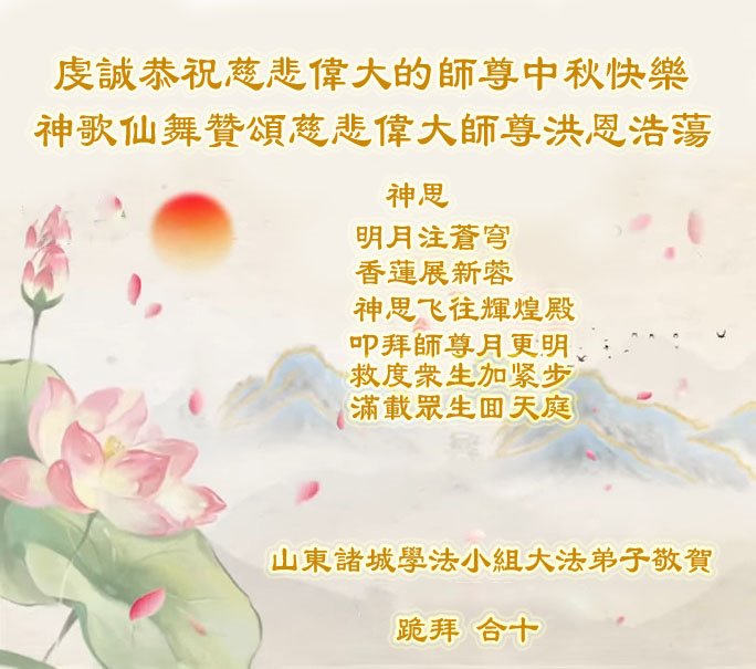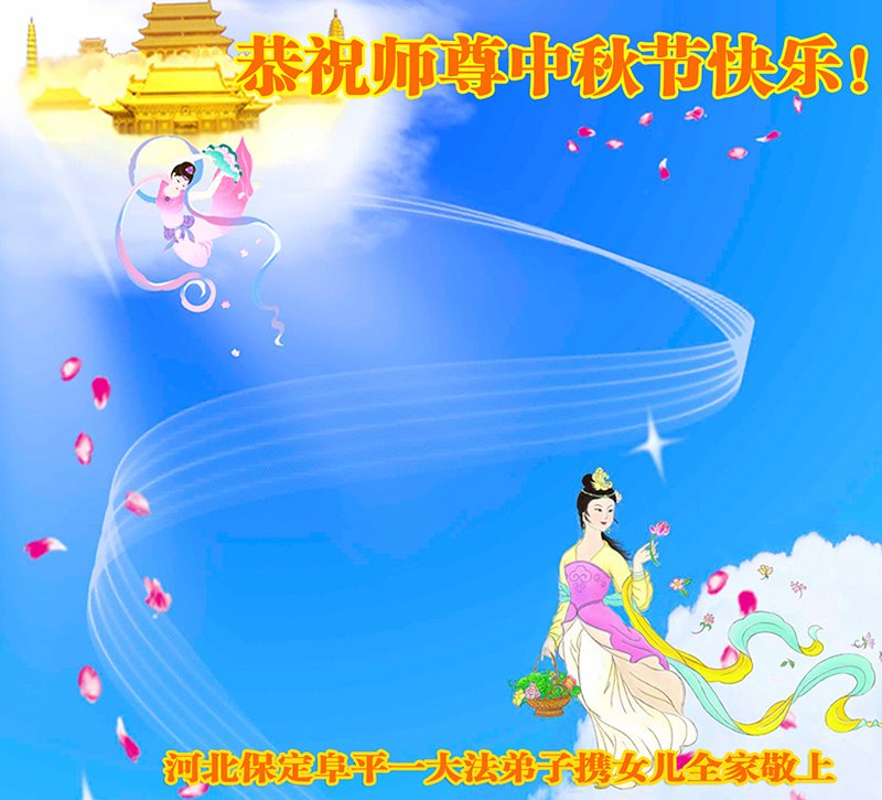 是师父的巨大承受才使我们又迎来了一个温馨的中秋。弟子们怀着感恩的心恭祝恩师中秋佳节快乐!历史走到今天的关键时刻,诚念“九字真言”而逢凶化吉、遇难呈祥的真实例子,证实了法轮大法在人间的神奇,破除了中共的欺世谎言。弟子每一个前進的步伐都浸透着师父的心血,我们一定更加努力,踏踏实实的修好自己,抓紧救度众生,完成史前大愿!
