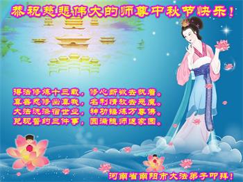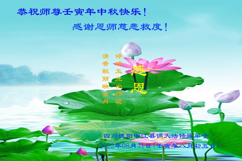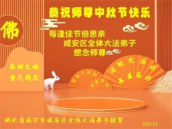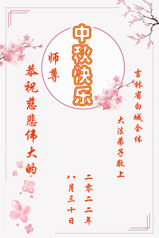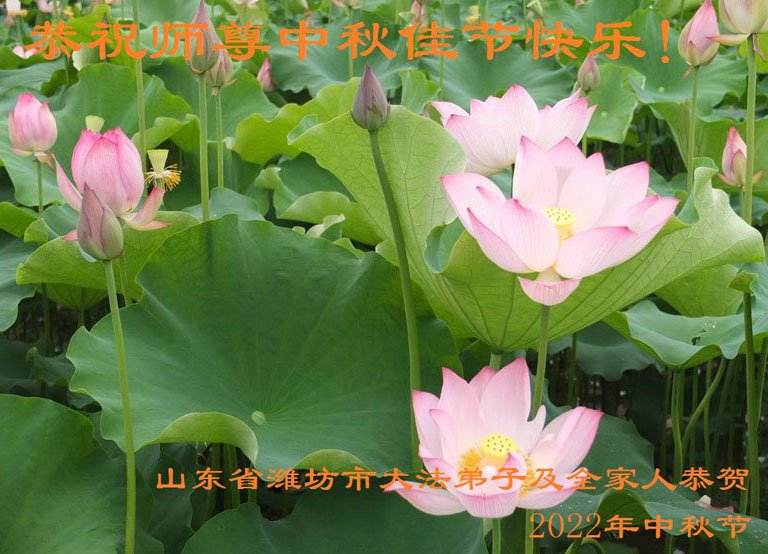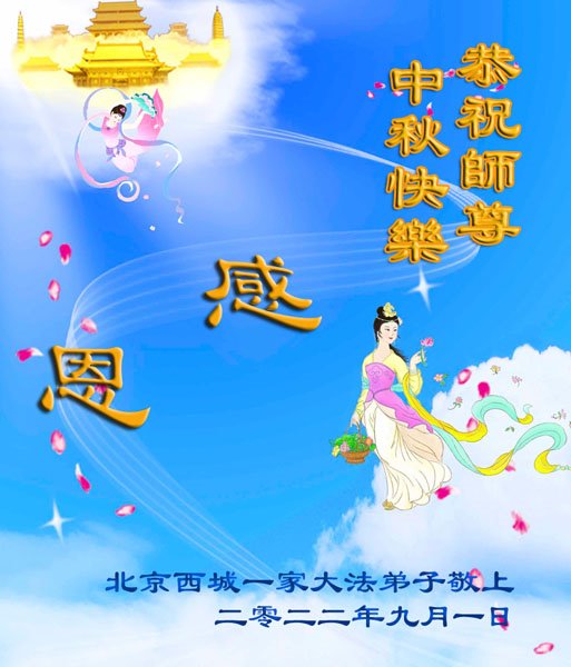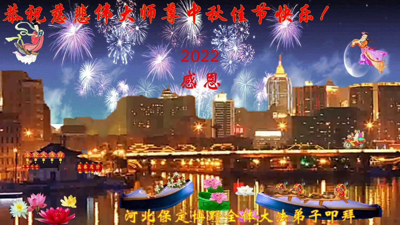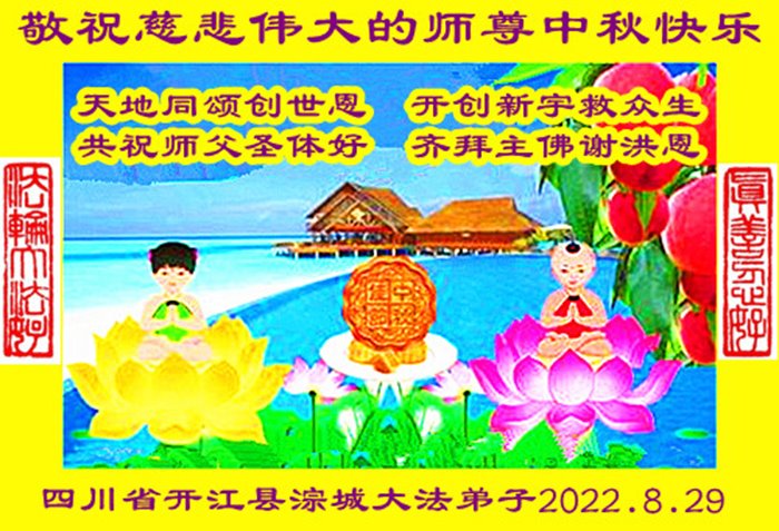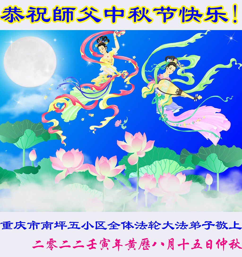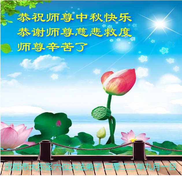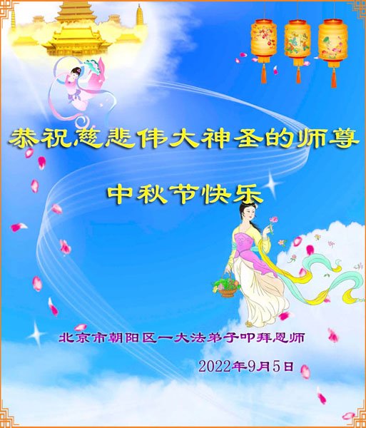 <英文版: http://en.minghui.org/html/articles/2022/9/9/203242.html>精進修己多救人 中国各省大法弟子恭贺师尊中秋快乐