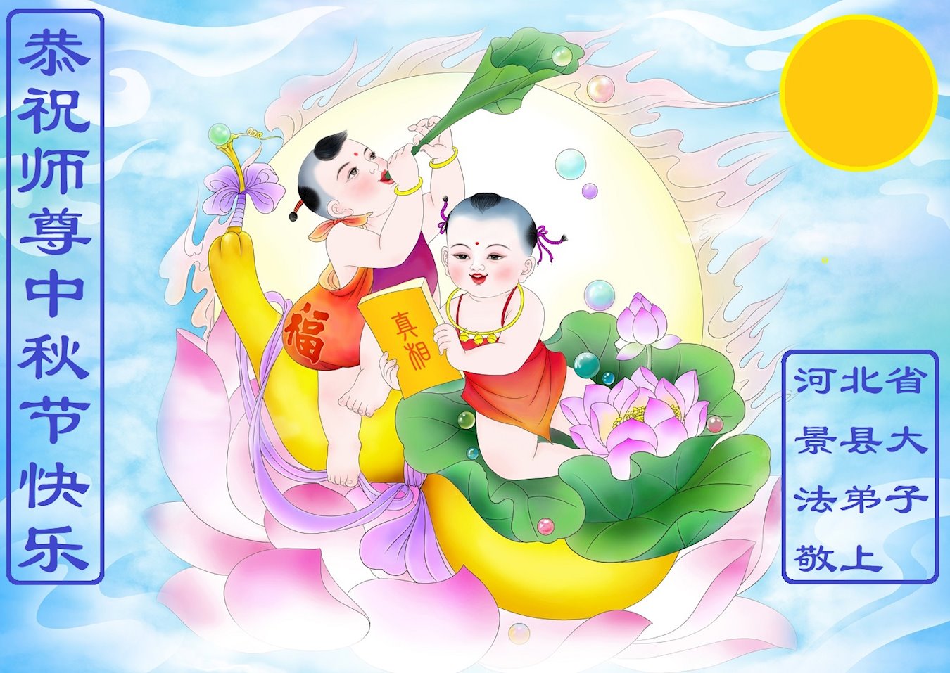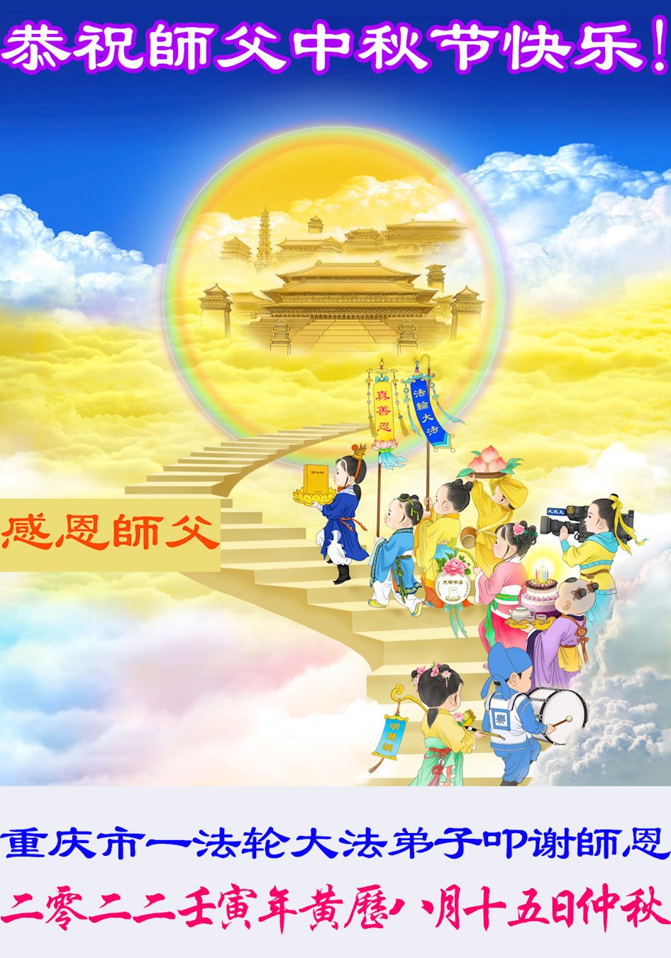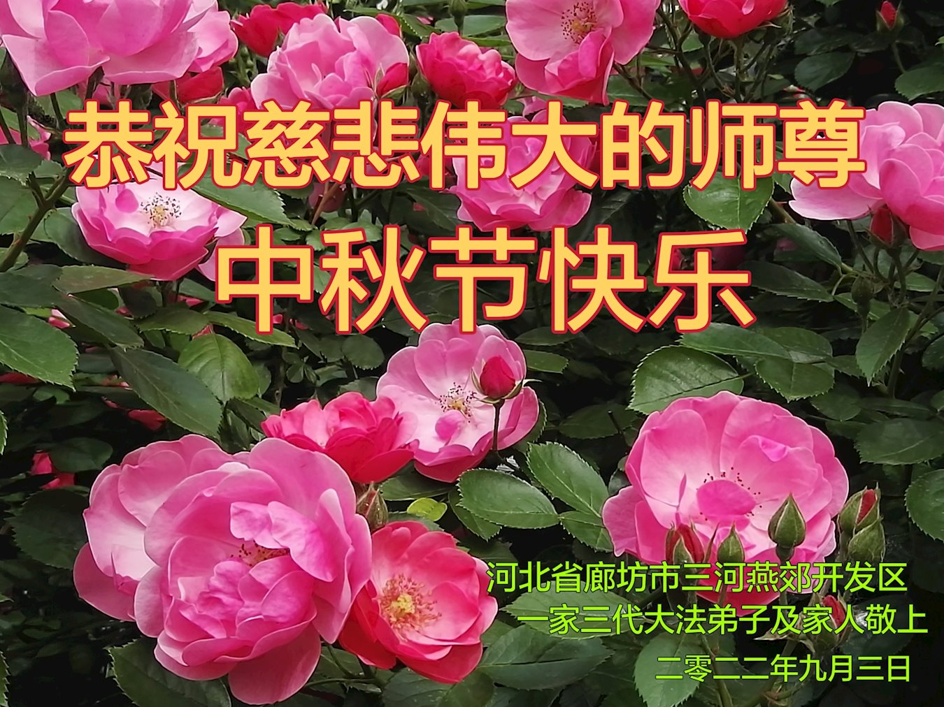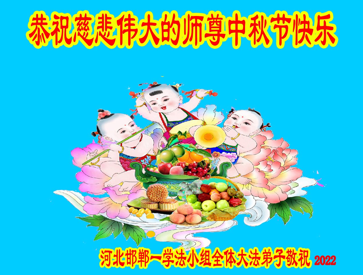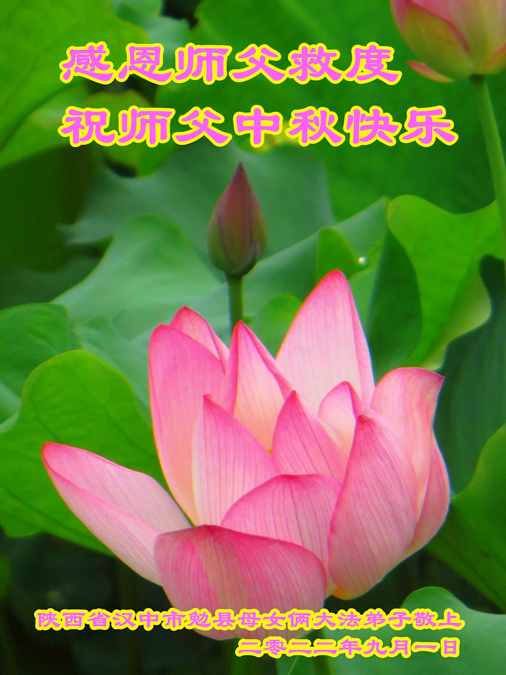 <英文版: http://en.minghui.org/html/articles/2022/9/9/203242.html>精進修己多救人 中国各省大法弟子恭贺师尊中秋快乐