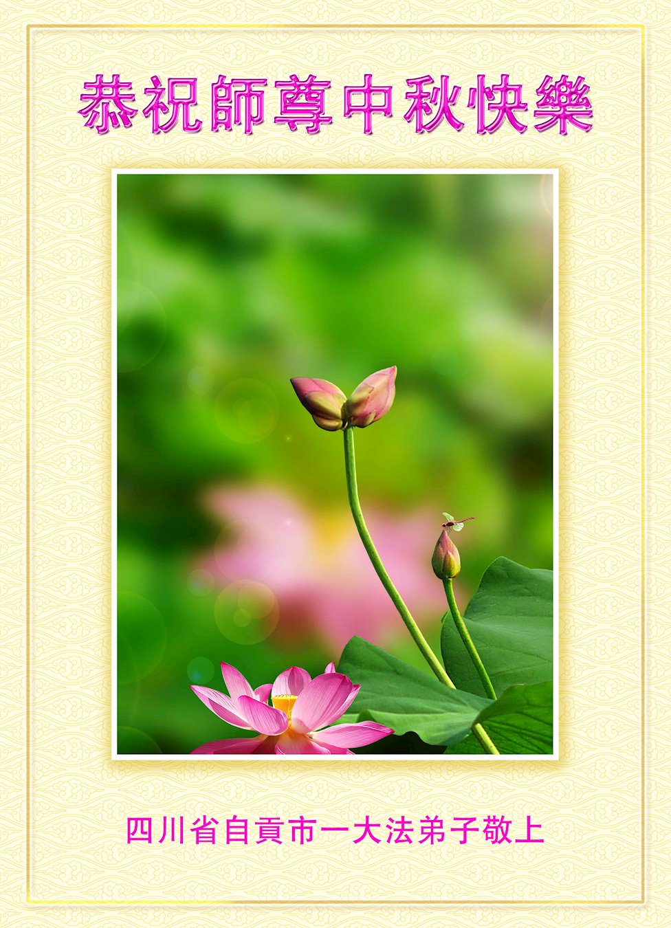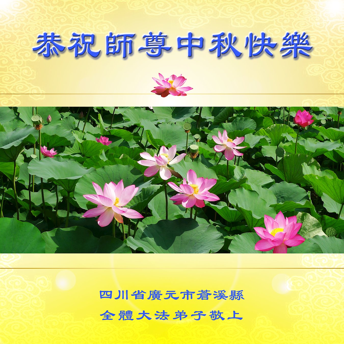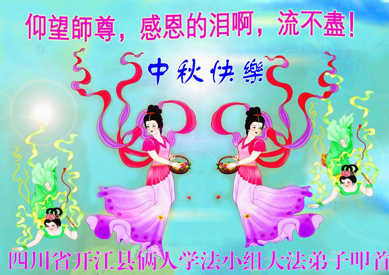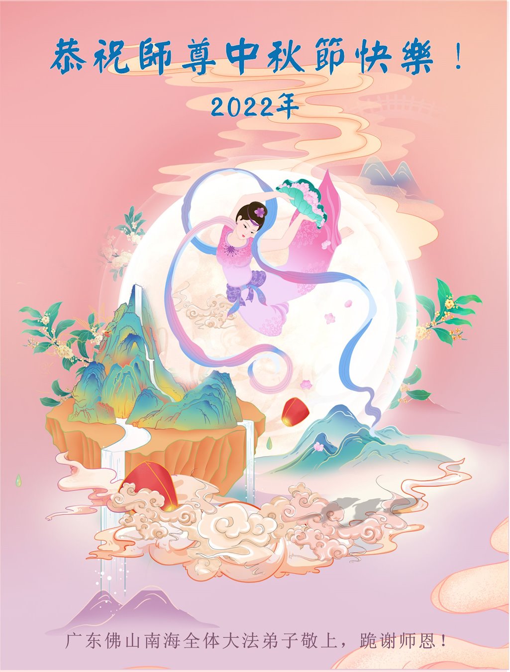 <英文版: http://en.minghui.org/html/articles/2022/9/9/203242.html>精進修己多救人 中国各省大法弟子恭贺师尊中秋快乐