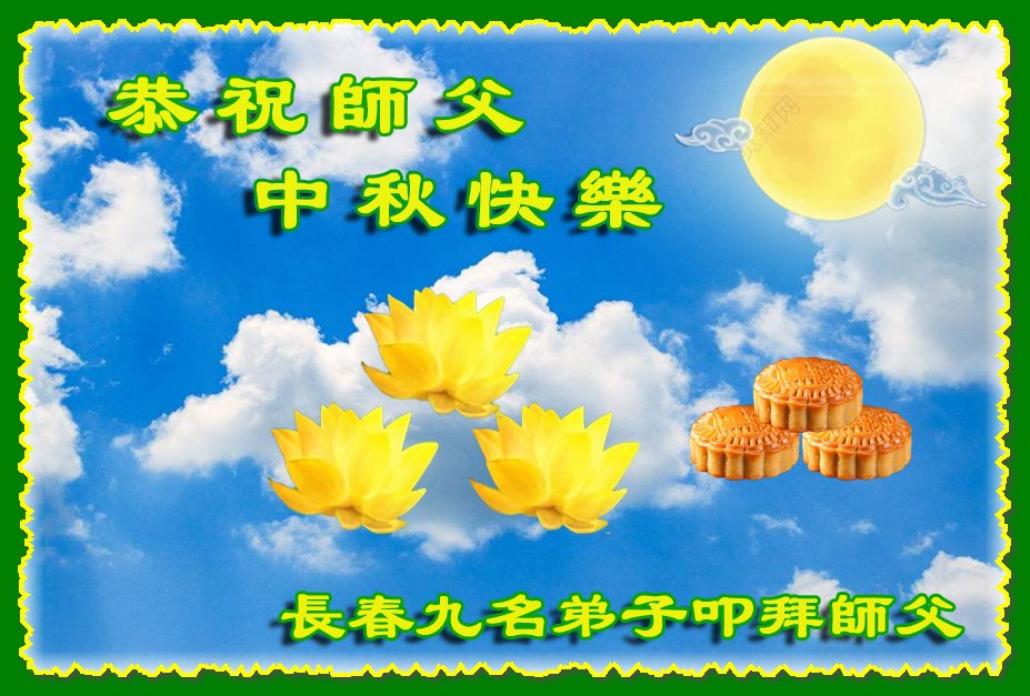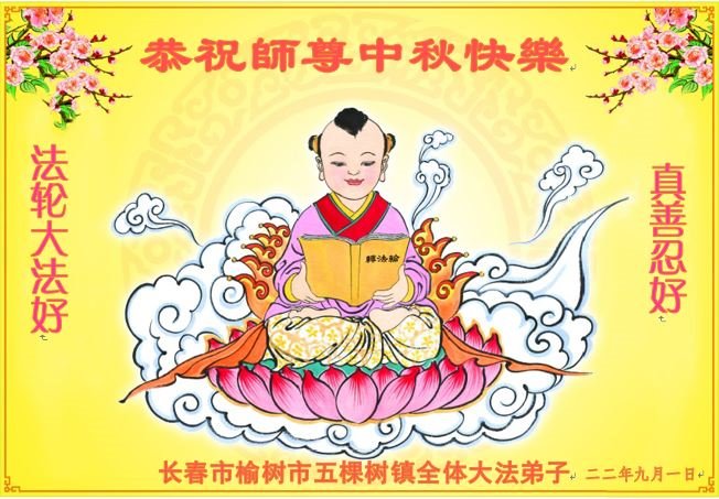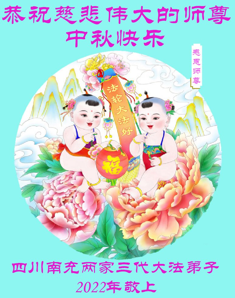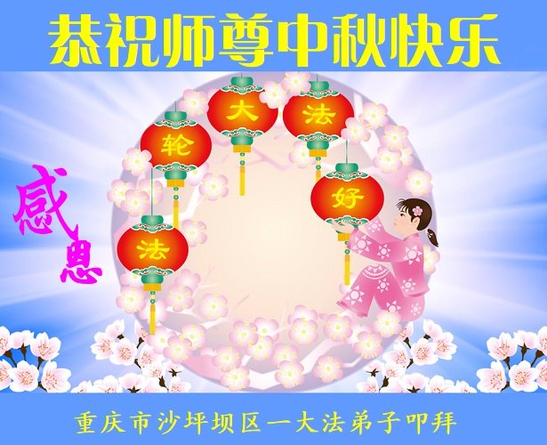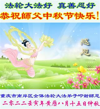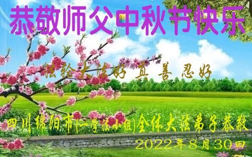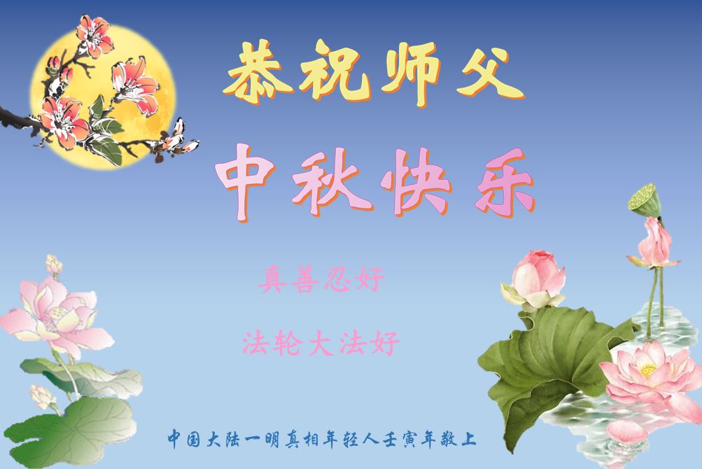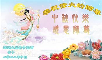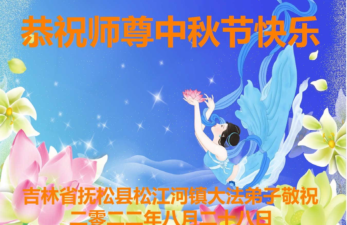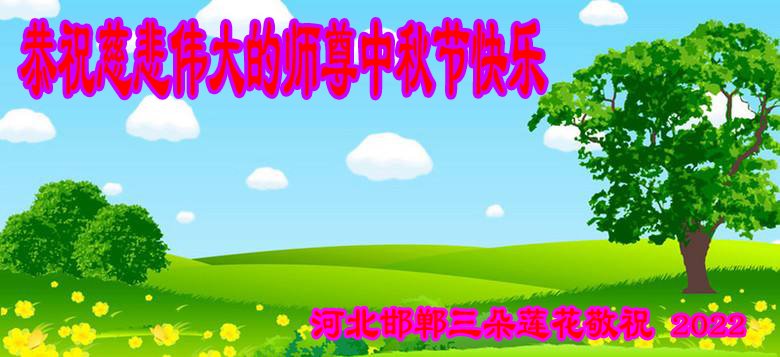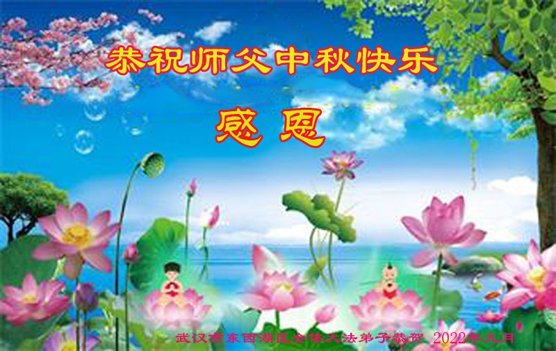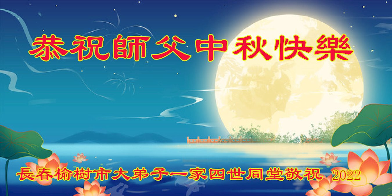 【明慧网二零二二年九月八日】法轮大法洪传世间,李洪志师尊慈悲的教诲和度化弟子,也慈悲的看护着世上每一个有缘人,把法轮大法的甘露洒向世界的每个角落,诚信“法轮大法好、真善忍好”的人们得到了大法给予的福祉。在二零二二年中秋节即将到来之际,明白法轮大法好的中国百姓向尊敬的李大师表达发自心底的感恩,恭祝大法师父中秋节快乐!