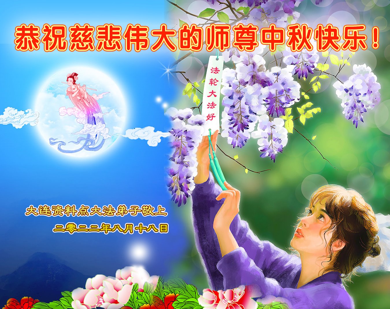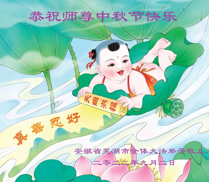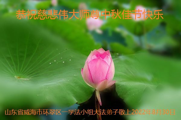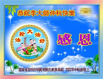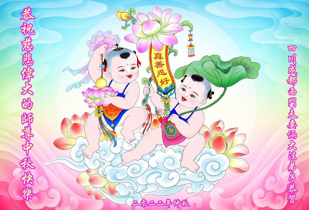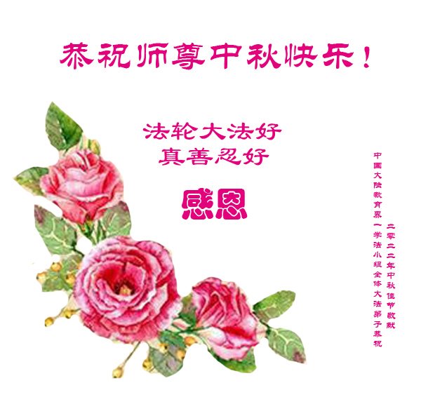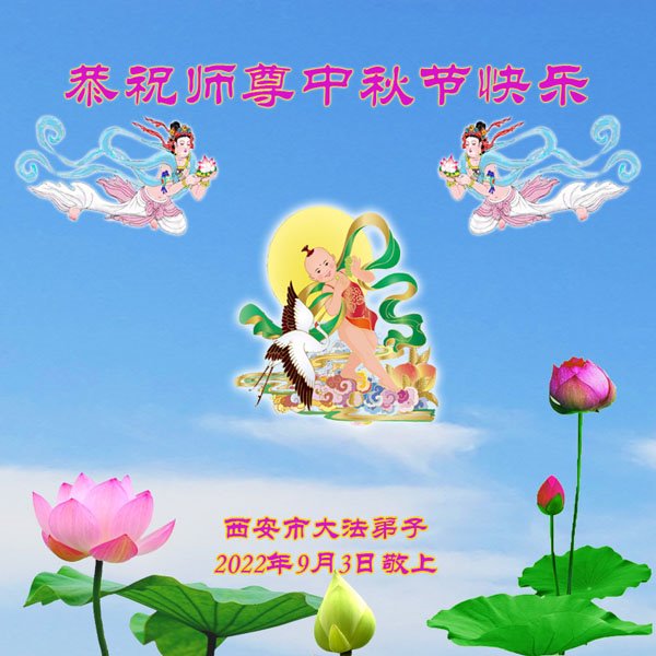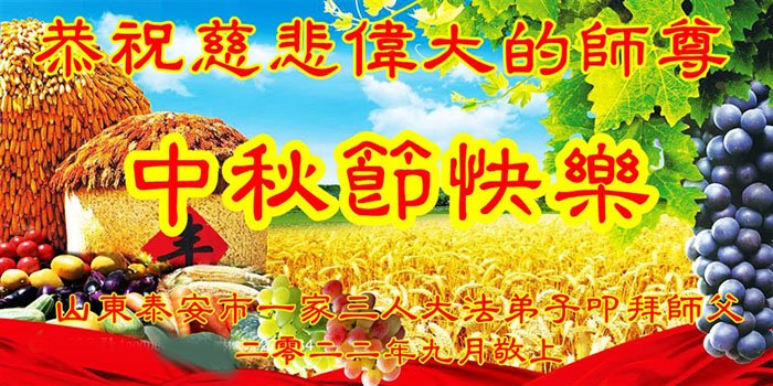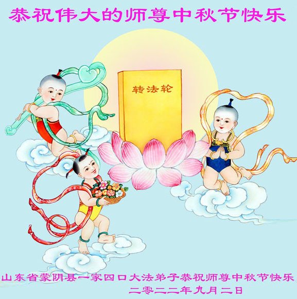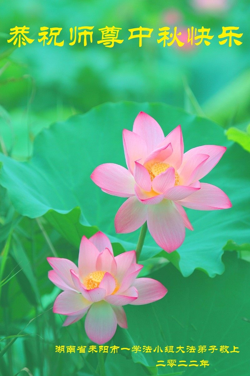 【明慧网二零二二年九月八日】法轮大法洪传世间,李洪志师尊慈悲的教诲和度化弟子,也慈悲的看护着世上每一个有缘人,把法轮大法的甘露洒向世界的每个角落,诚信“法轮大法好、真善忍好”的人们得到了大法给予的福祉。在二零二二年中秋节即将到来之际,明白法轮大法好的中国百姓向尊敬的李大师表达发自心底的感恩,恭祝大法师父中秋节快乐!