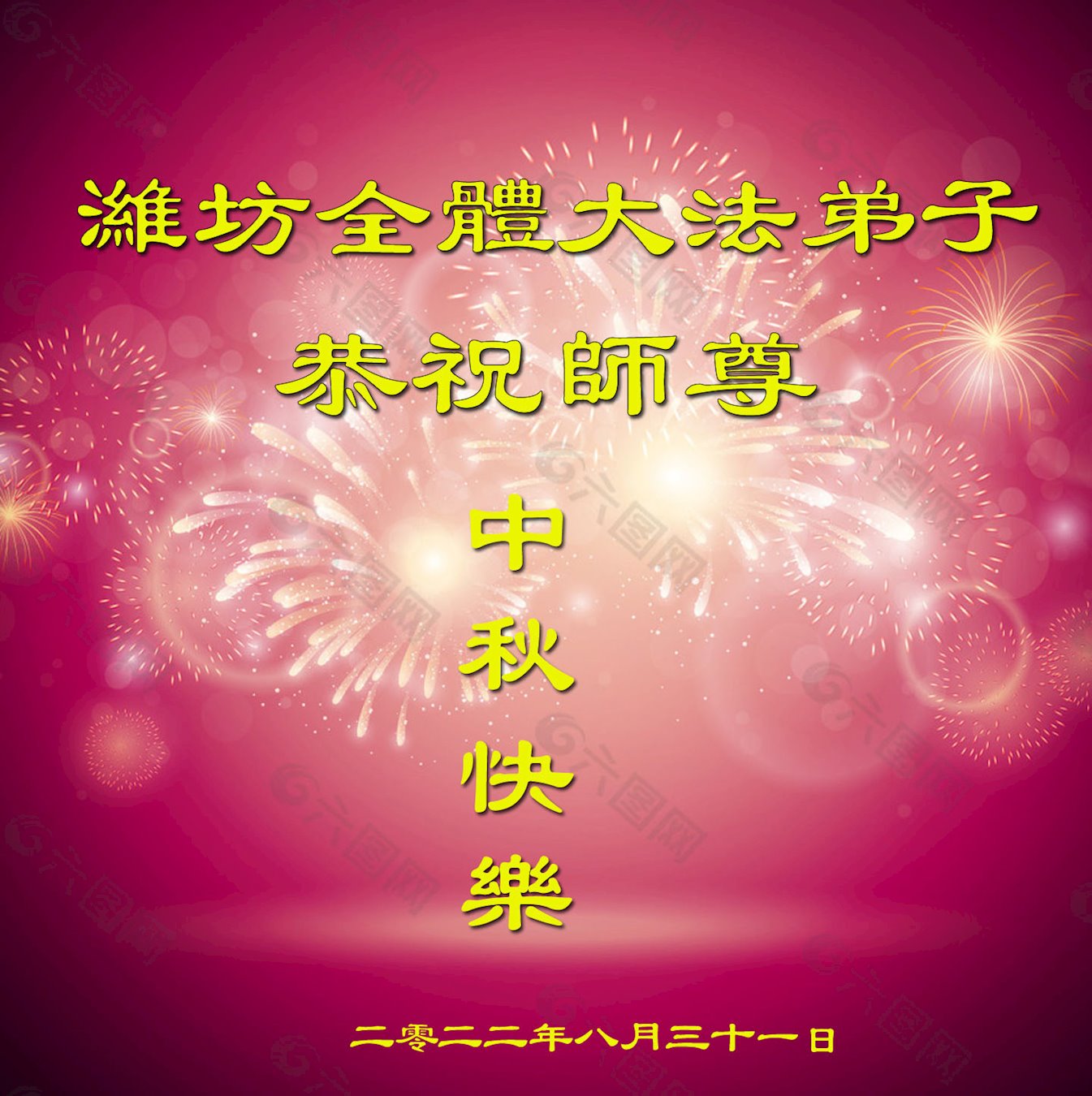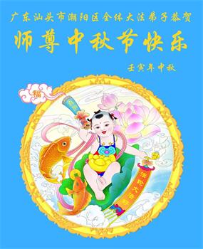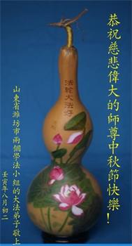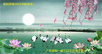在正法所剩不多的日子里,我们一定多学法,向内找修好自己,多救人,多发正念,排除一切干扰,完成自己的历史使命。我们全体大法弟子恭祝师尊中秋节快乐!